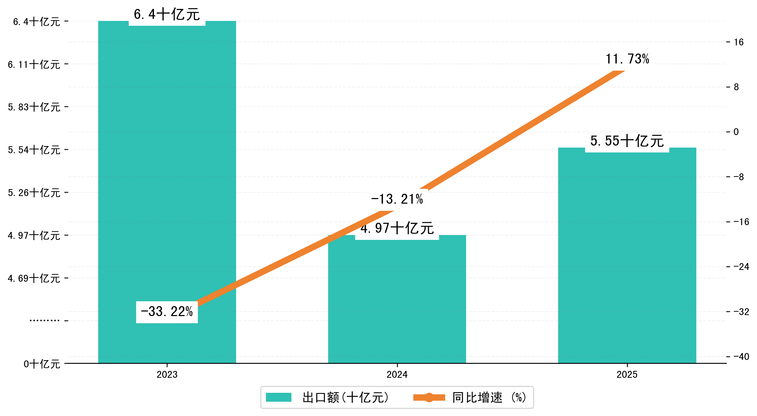 以美元计,2025年1-8月银川市出口额为7,7346.0416万美元,相比上年同期增加了7411.8986万美元,同比增加10.60%。