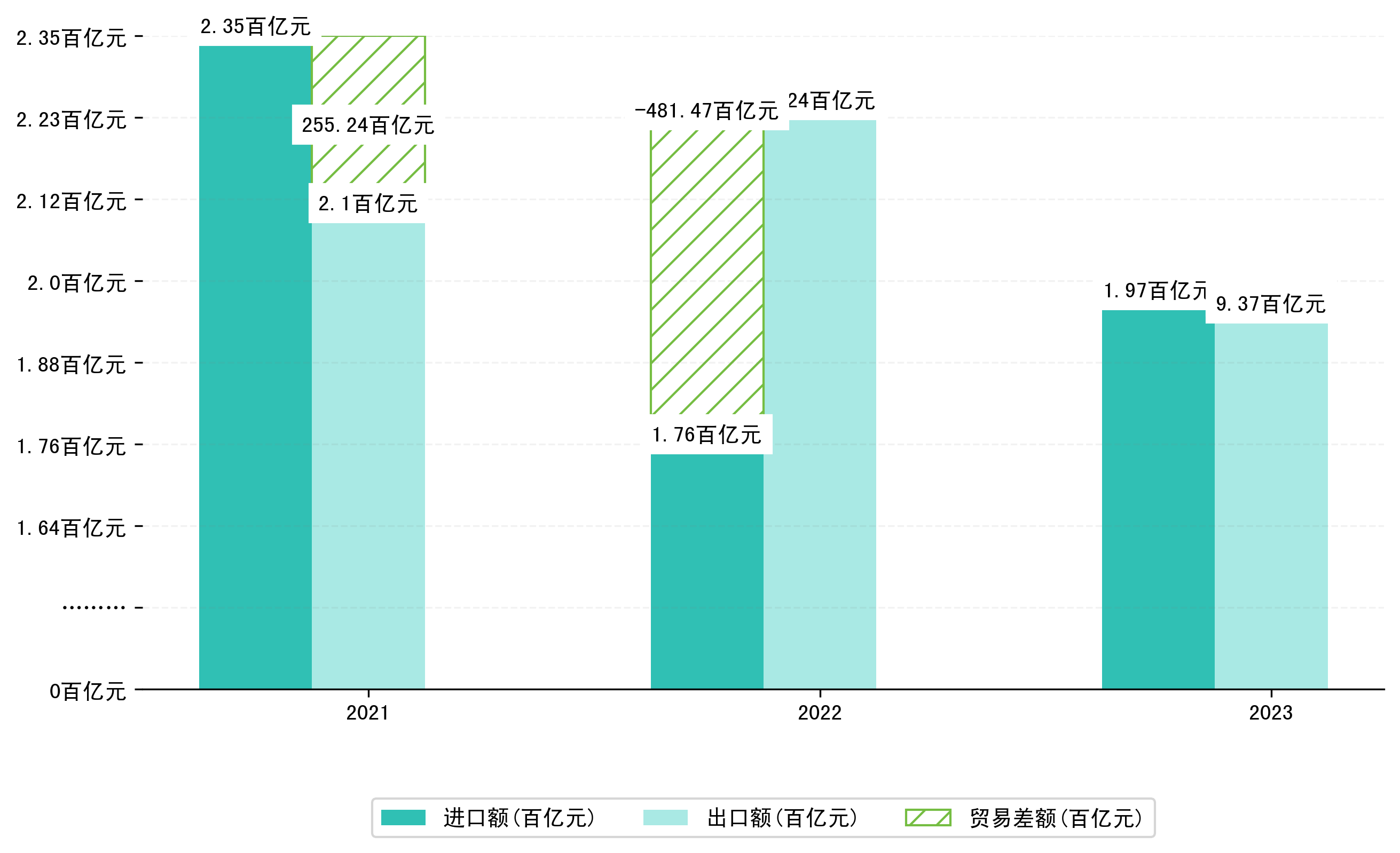 以美元计,2023年1-10月营口市贸易差额为1423,3205万美元(贸易逆差),相比上年同期减少了7,4162,4547万美元,同比减少-101.96%。