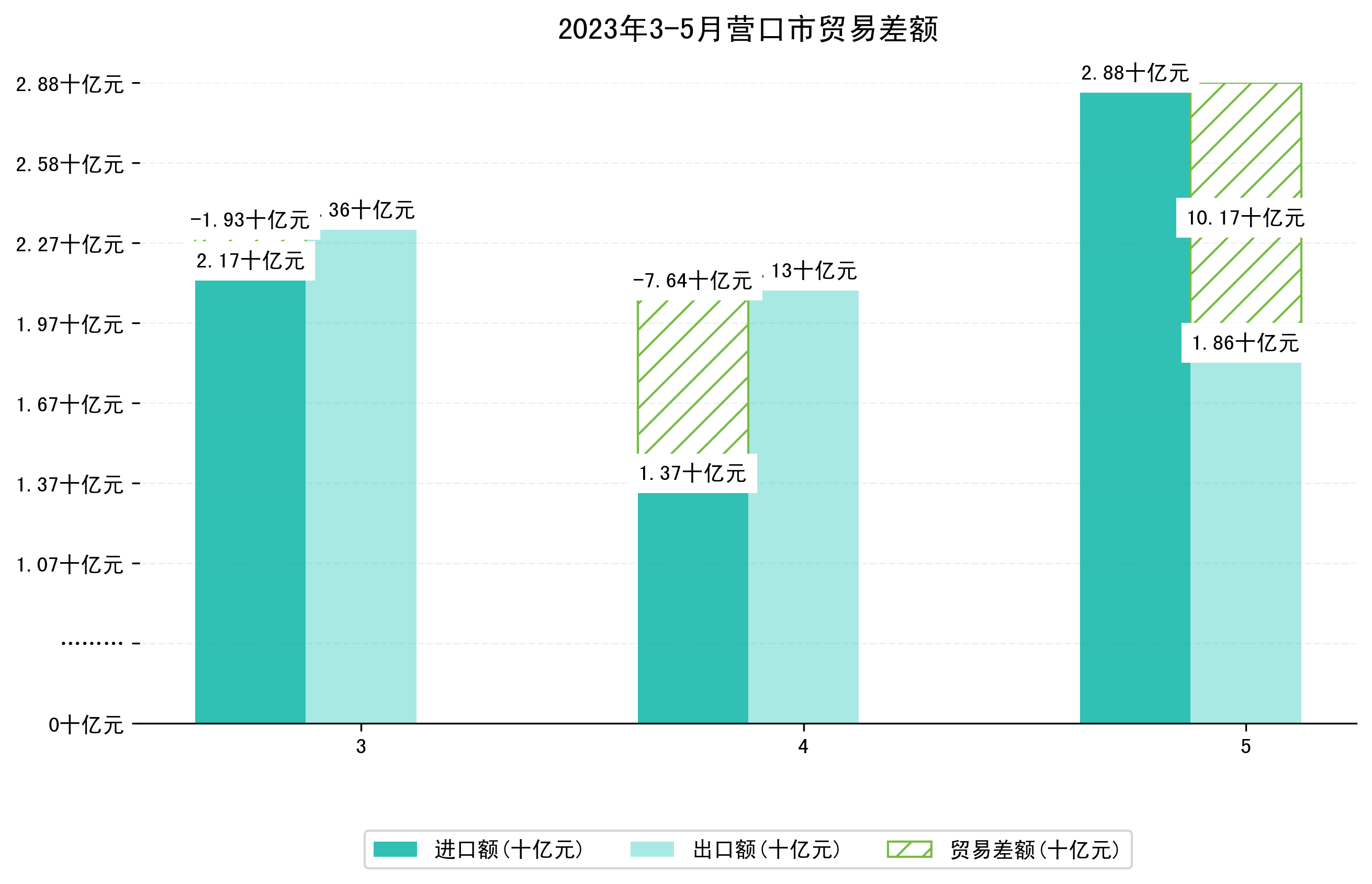 一、2023年5月营口市单月出口总额及进出口差额统计分析