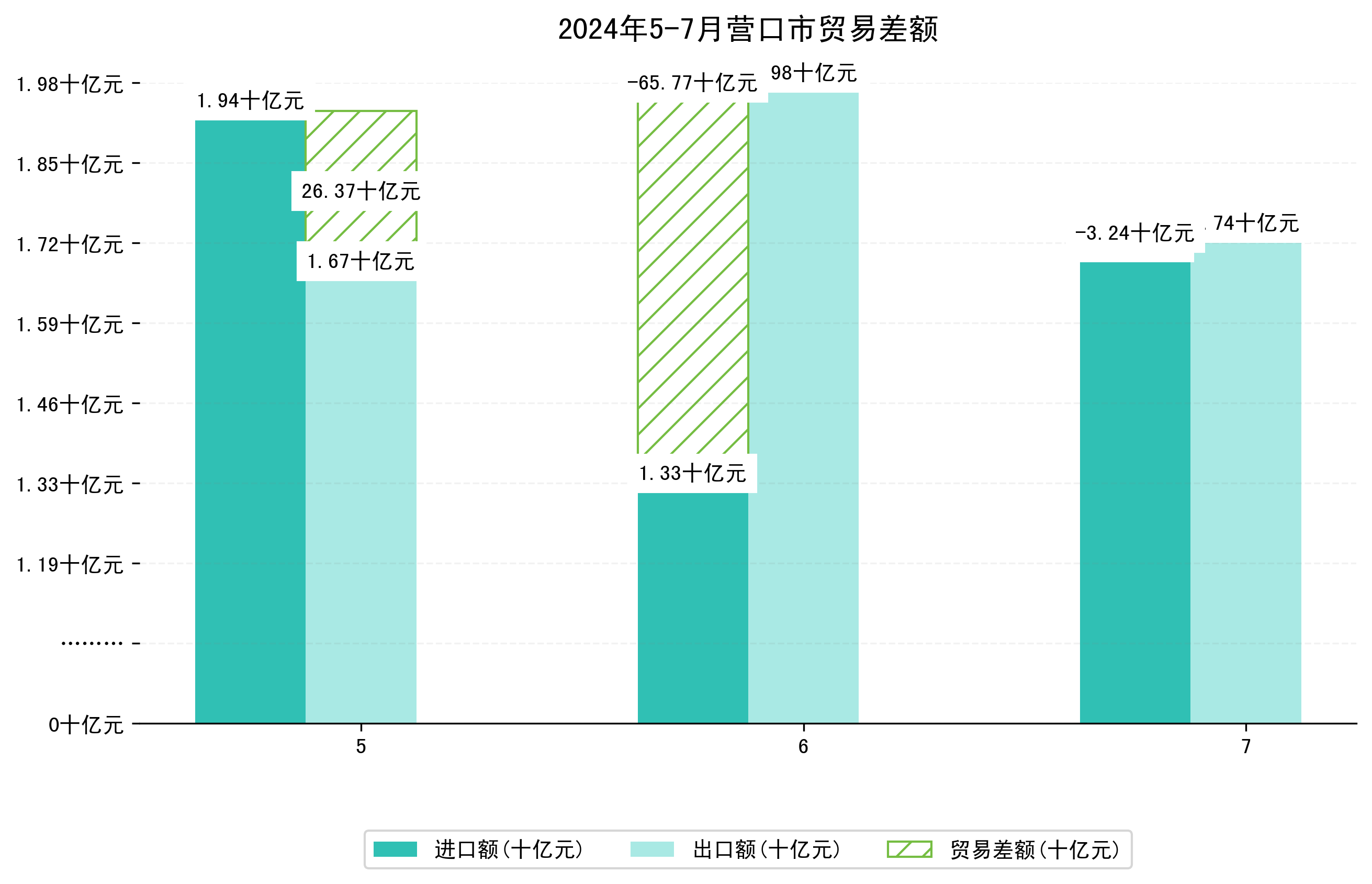 一、2024年7月营口市单月出口总额及进出口差额统计分析
