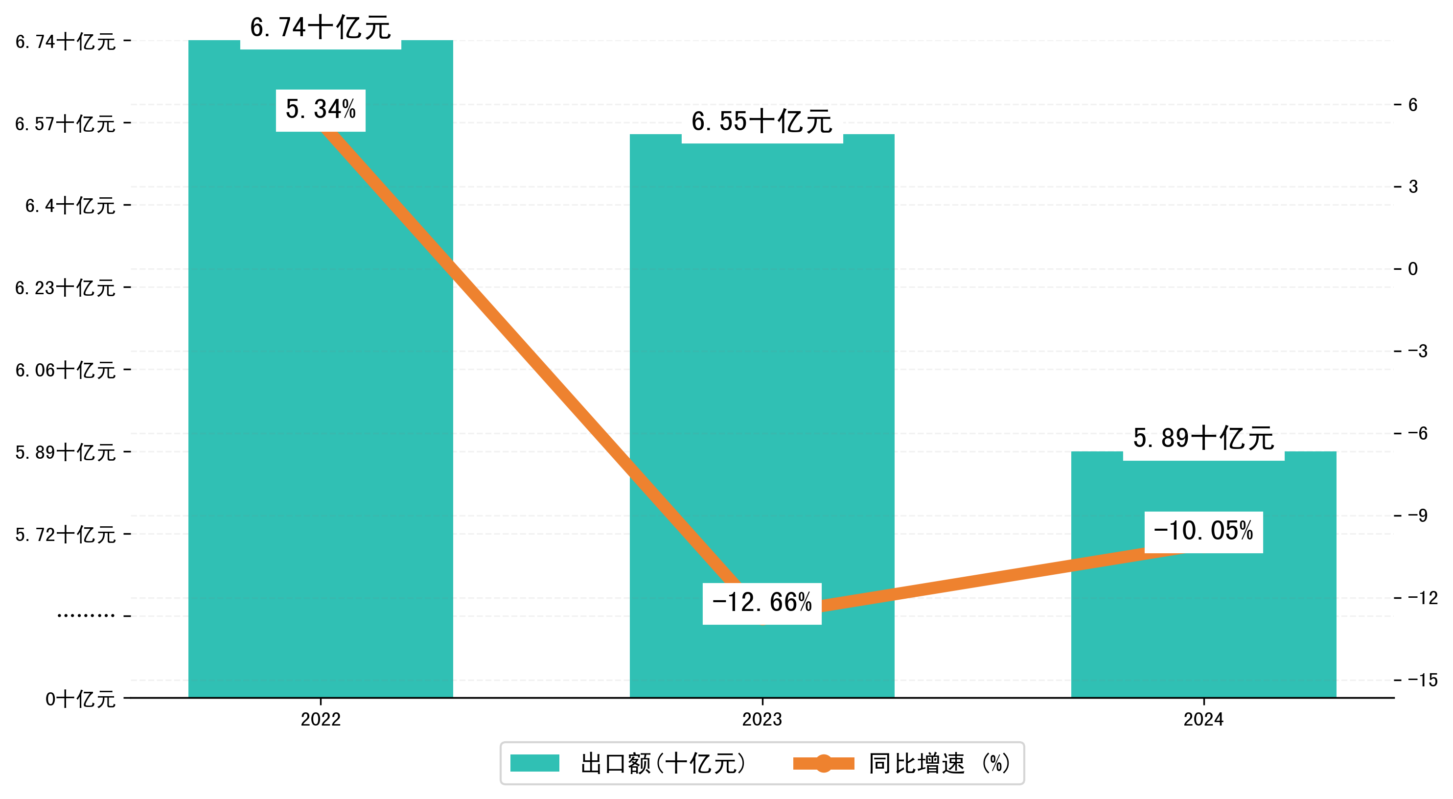 以人民币计,2024年1-3月营口市出口额为58,9088.6127万元,相比上年同期减少了6,5831.3512万元,同比减少了-4.10%。