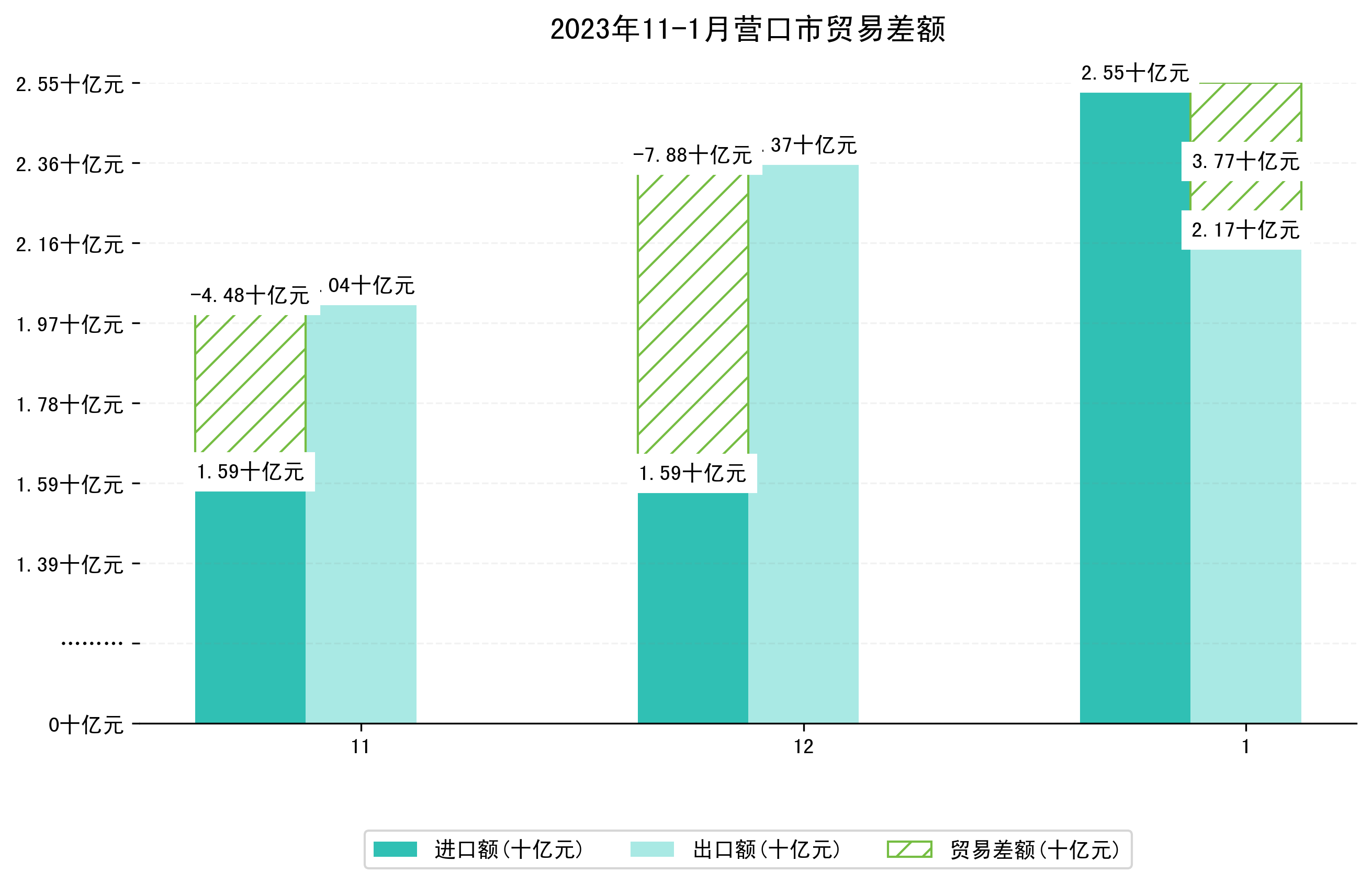 一、2023年1月营口市单月出口总额及进出口差额统计分析