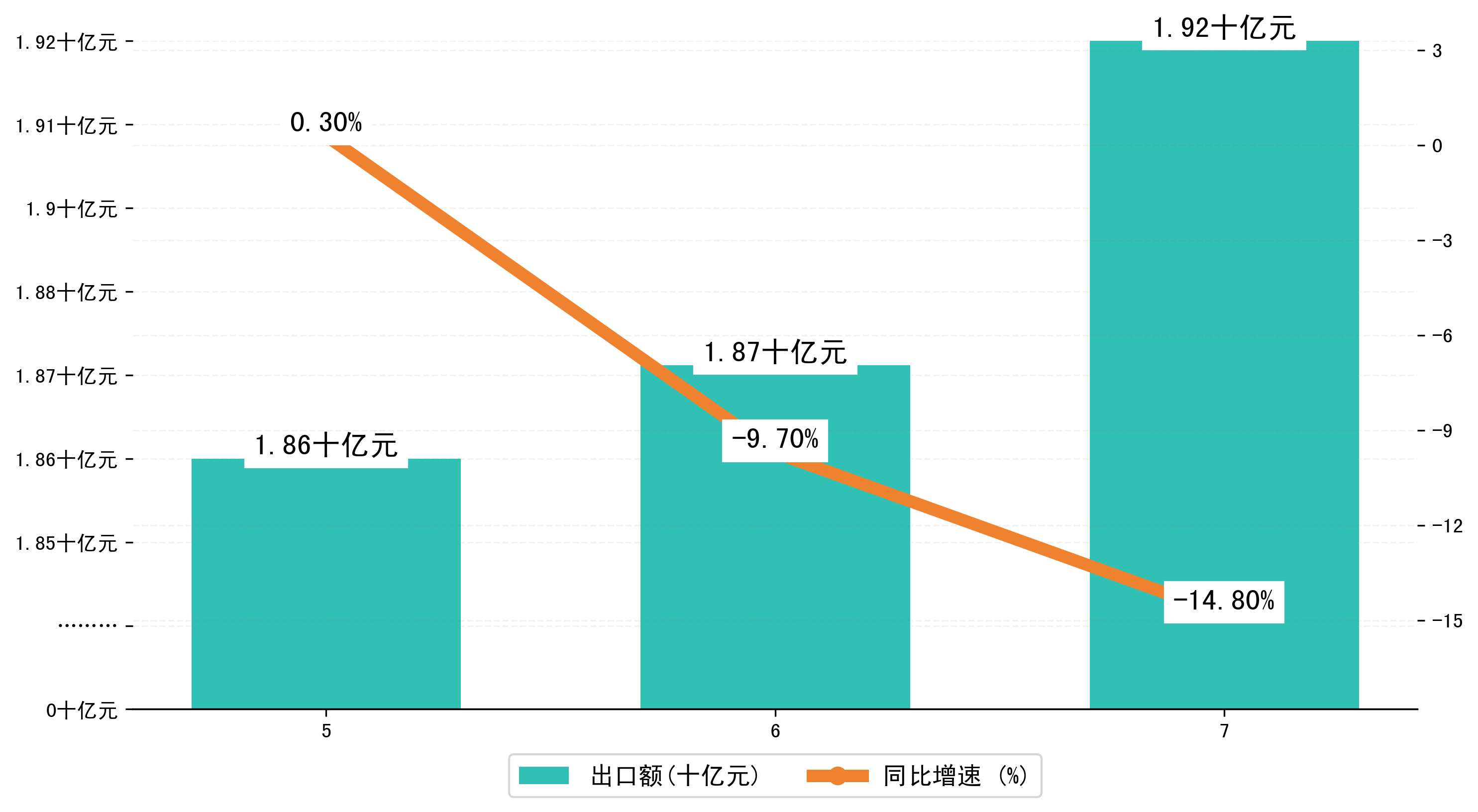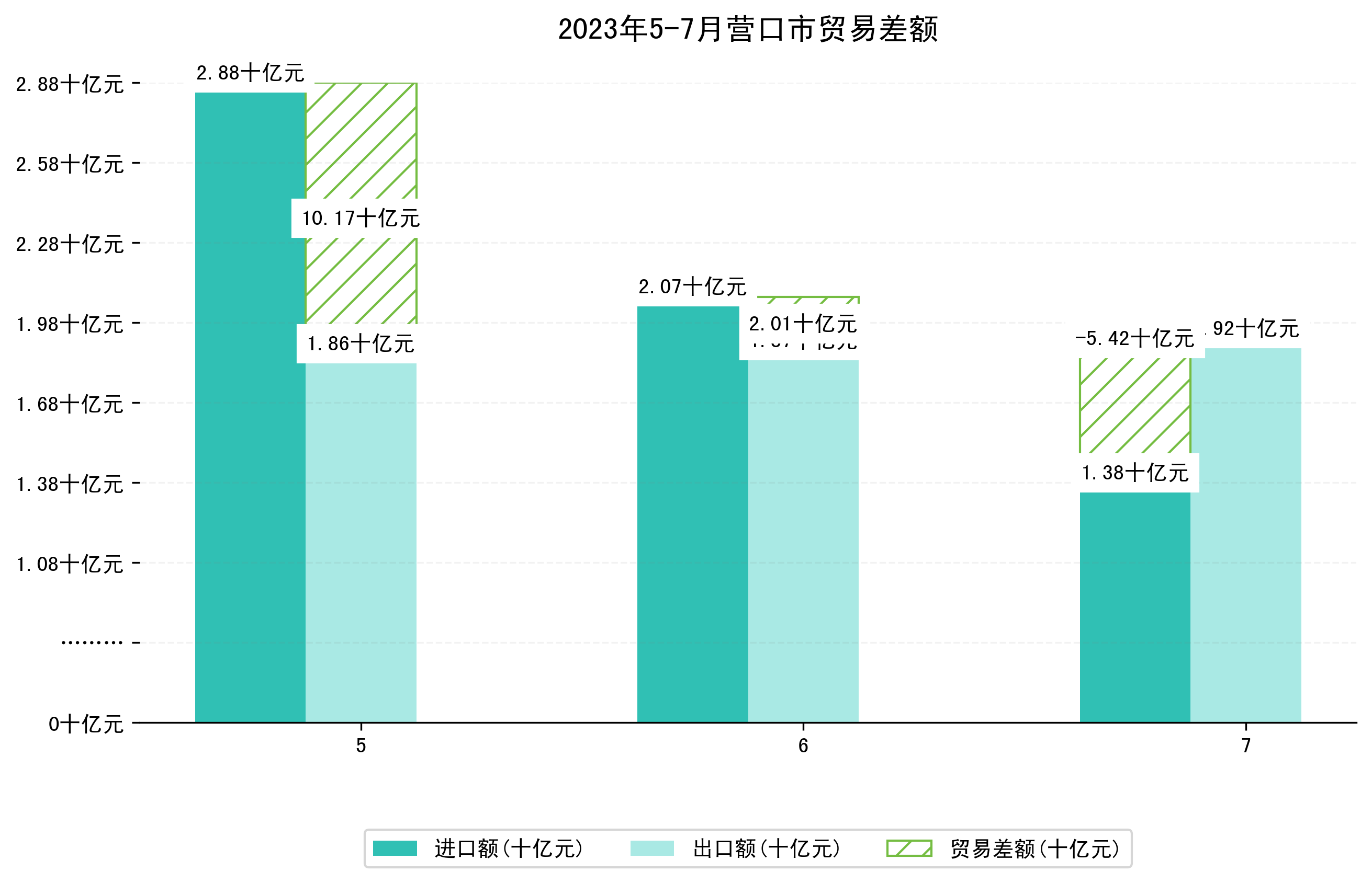 一、2023年7月营口市单月出口总额及进出口差额统计分析