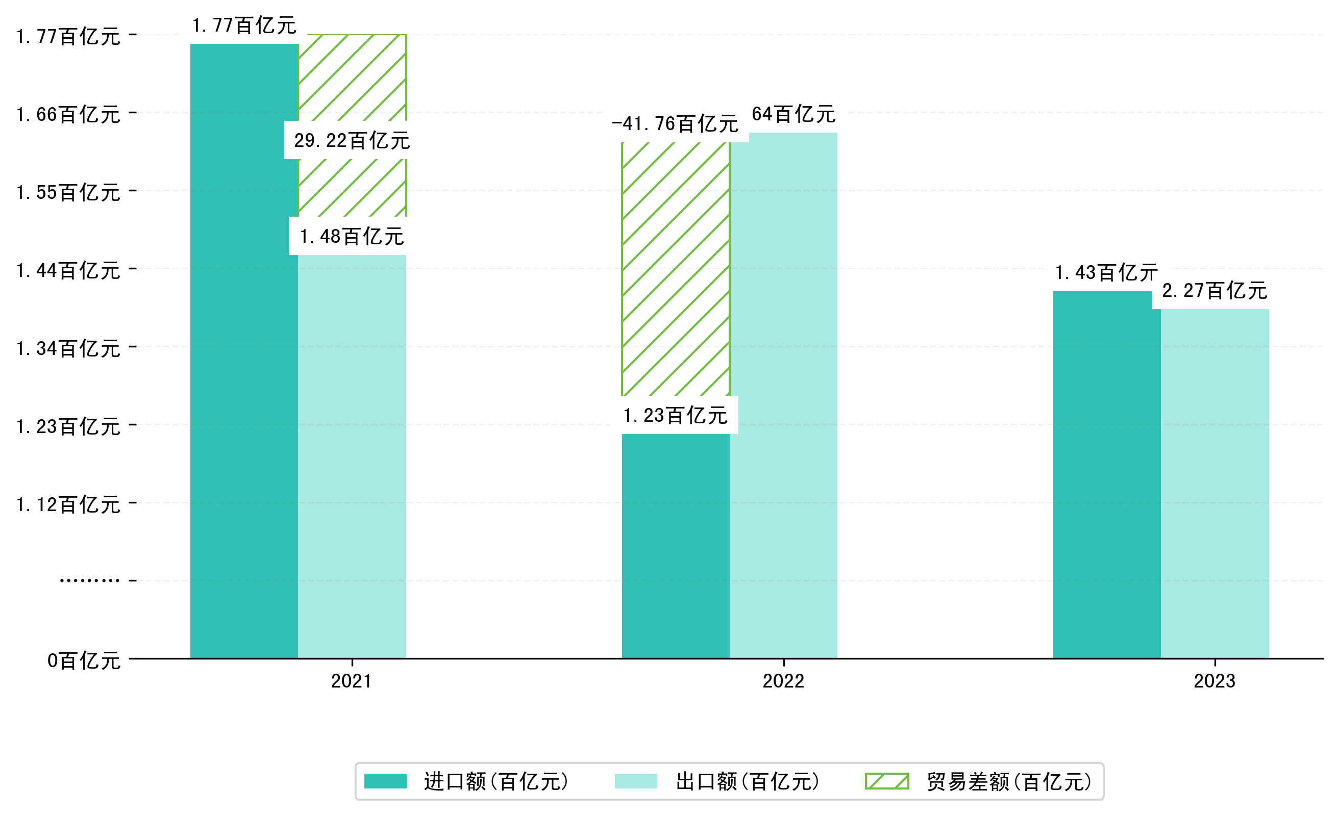 以美元计,2023年1-7月营口市贸易差额为3128,6544万美元(贸易逆差),相比上年同期减少了6,6556,9563万美元,同比减少-104.93%。