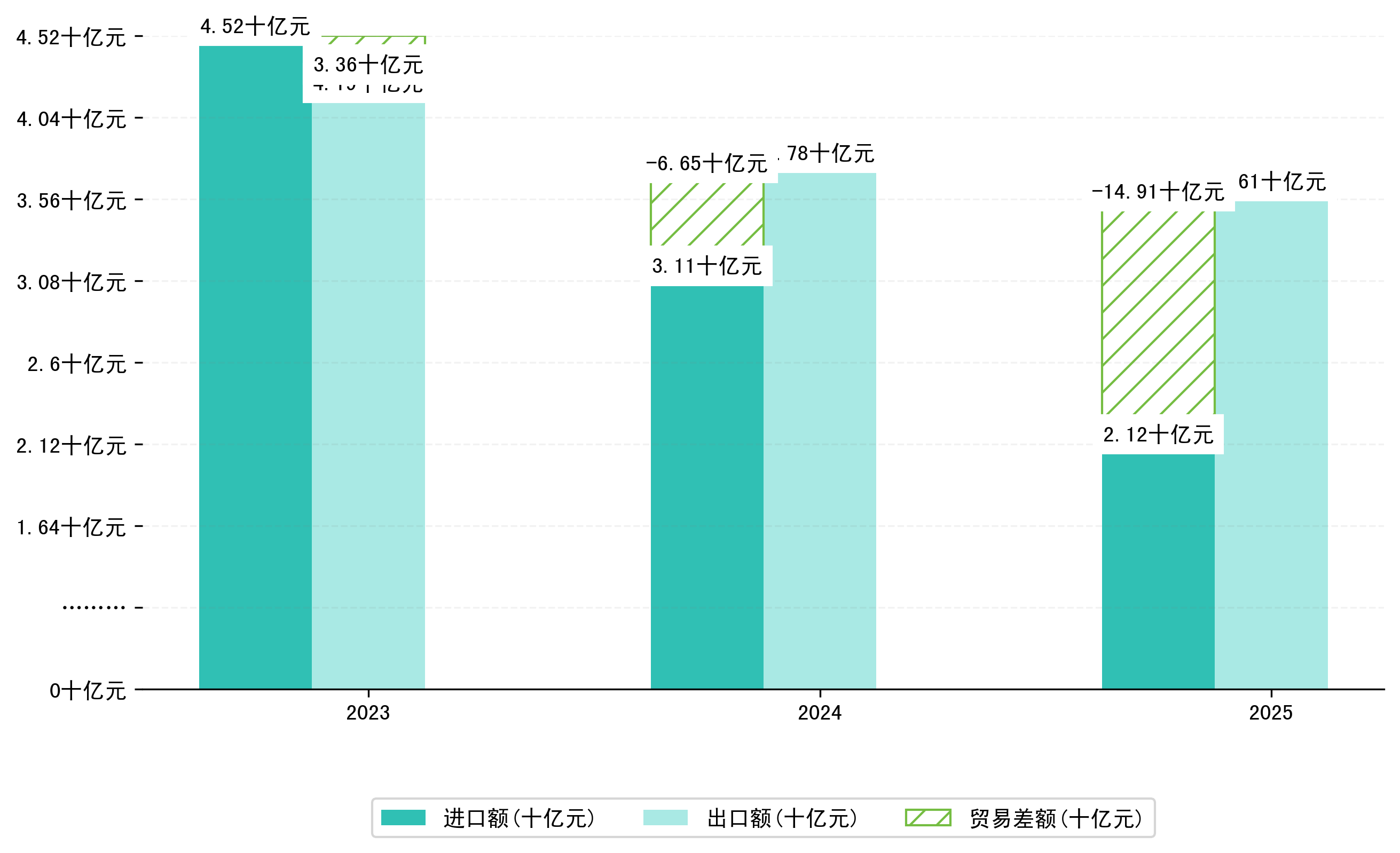 以美元计,2025年1-2月营口市贸易差额为2,0733,0950万美元(贸易顺差),相比上年同期增加了1,1479,2291万美元,同比增加124.05%。