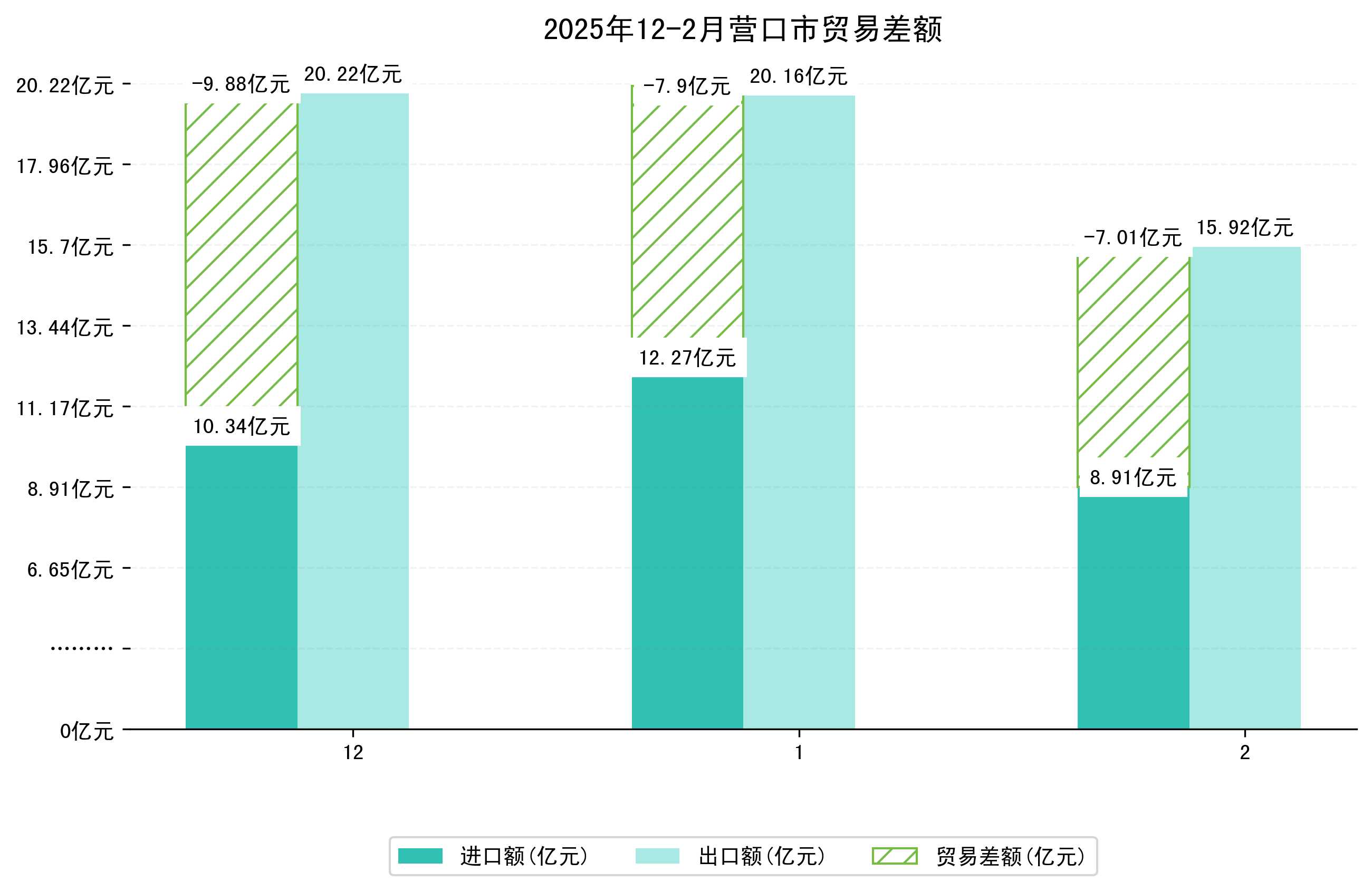 一、2025年2月营口市单月出口总额及进出口差额统计分析