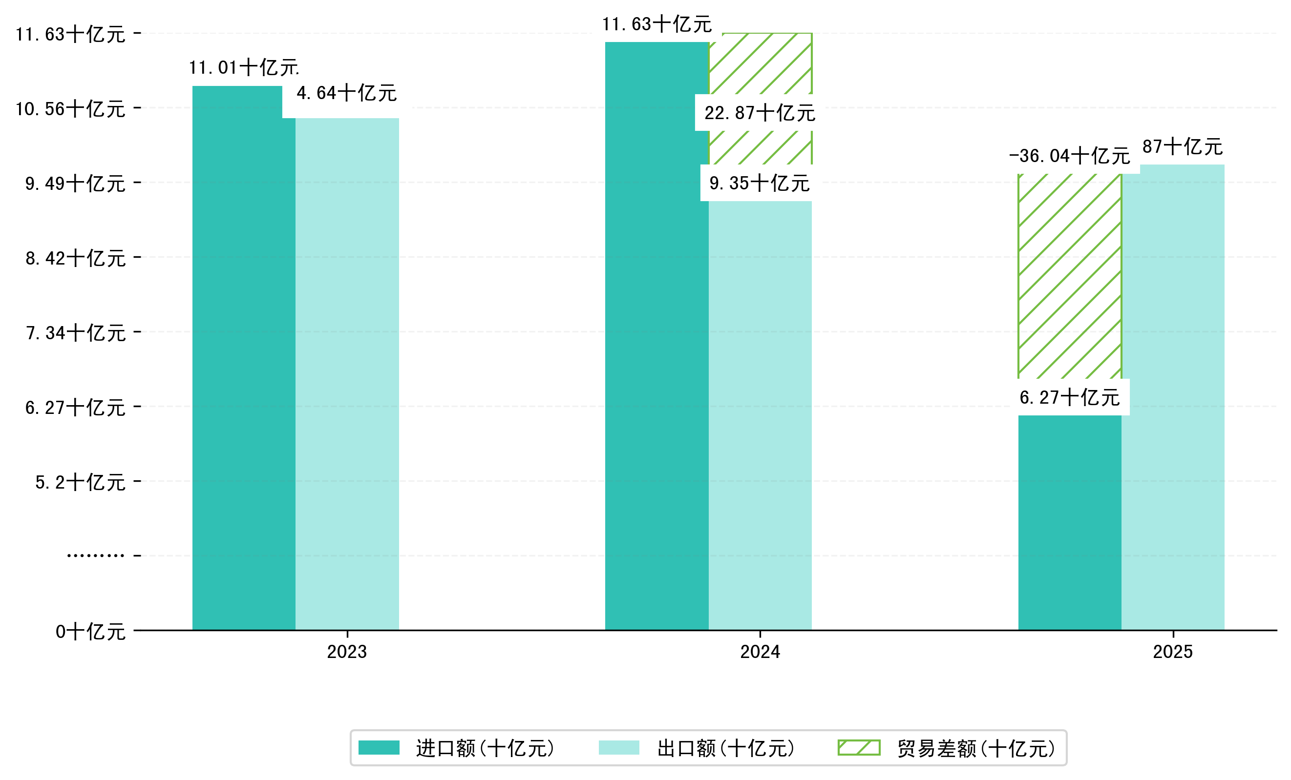 以美元计,2025年1-5月营口市贸易差额为5,0130,0613万美元(贸易顺差),相比上年同期增加了8,2479,7370万美元,同比增加-254.96%。
