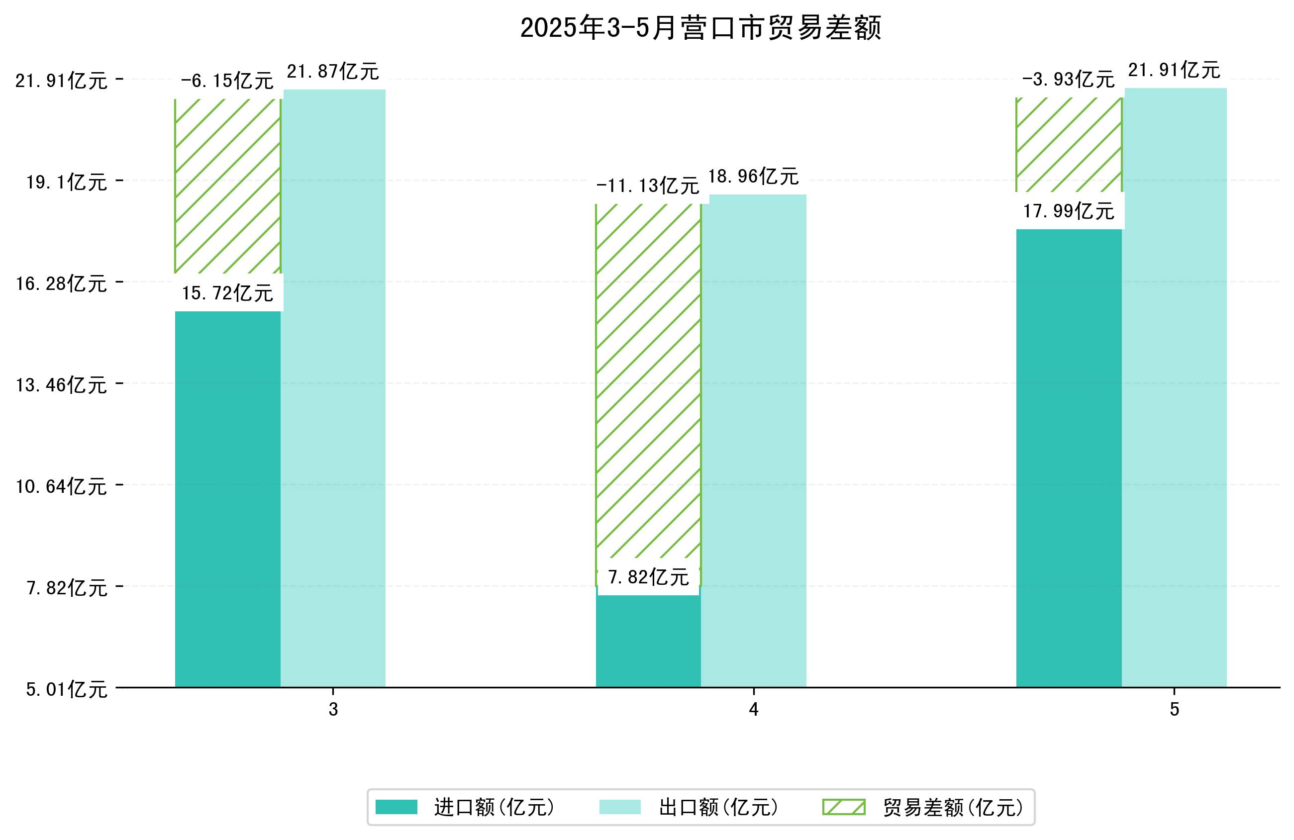 一、2025年5月营口市单月出口总额及进出口差额统计分析