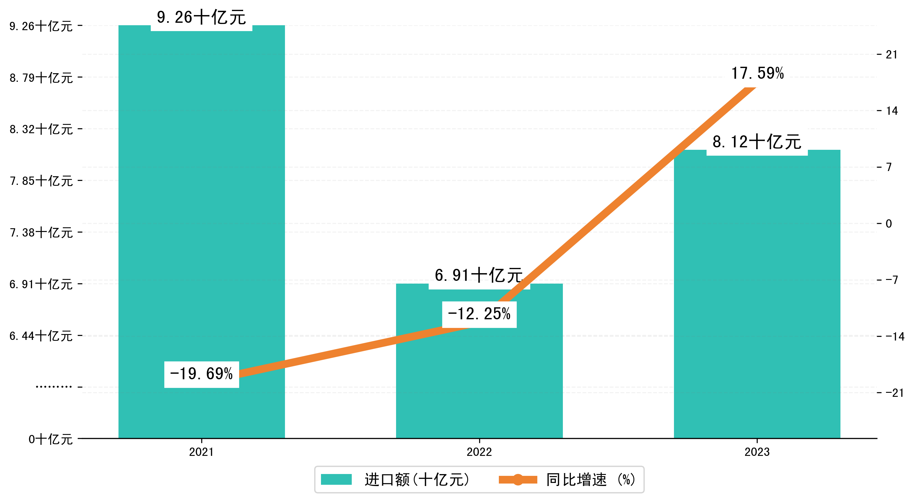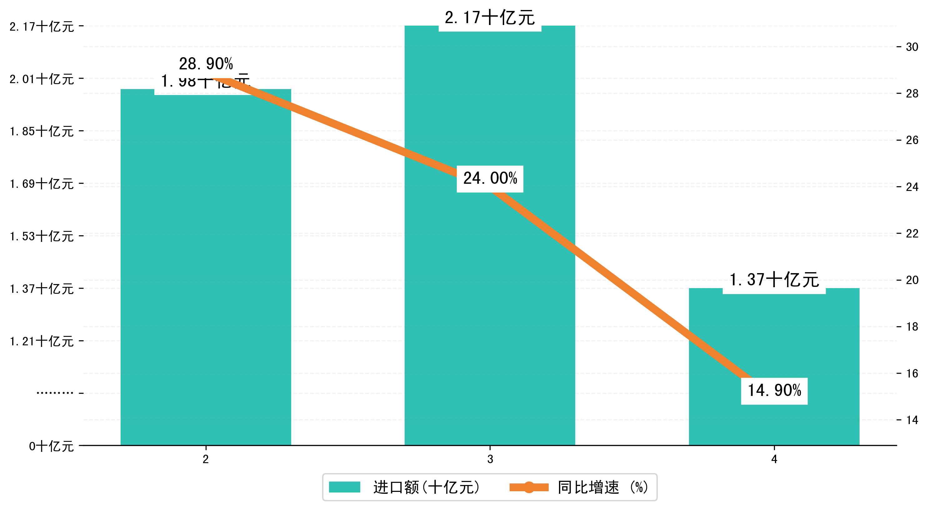 以人民币计,2023年1-4月营口市进口额为81,2380.009万元,相比上年同期增加了12,1548.0665万元,同比增加了14.90%。