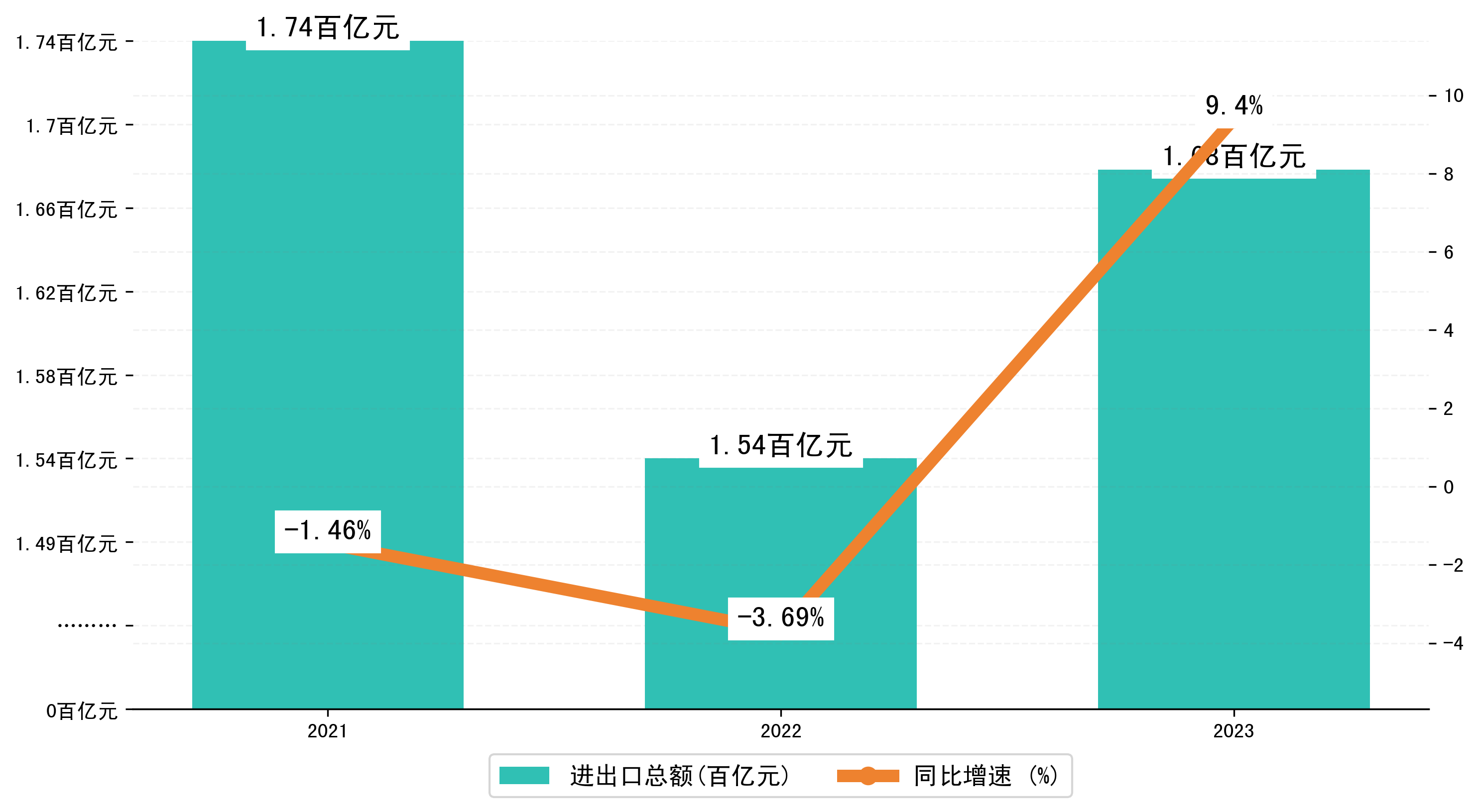 以人民币计,2023年1-4月营口市进出口总额为168,0547.6097万元,相比上年同期增加了14,4430.7566万元,同比增加了8.30%。