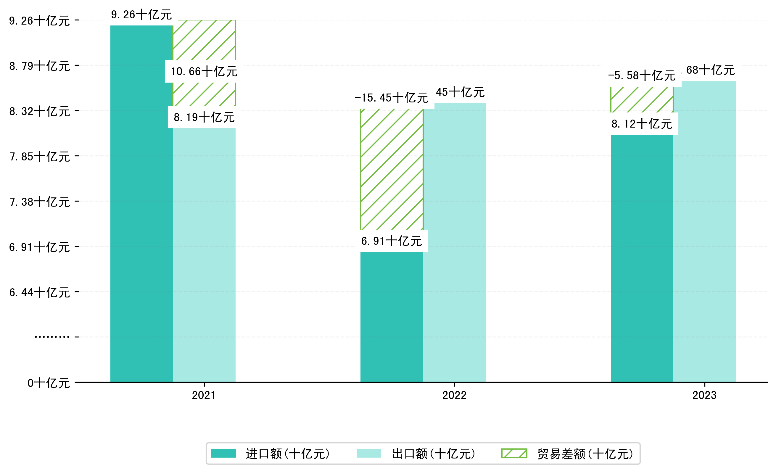 以人民币计,2023年4月营口市贸易差额为7,6369,8067万元(贸易顺差),相比上月增加了5,7118,4052万元,即8179,8464万美元;相比上年同期增加了6,9208,5777万元,同比增加966.43%。