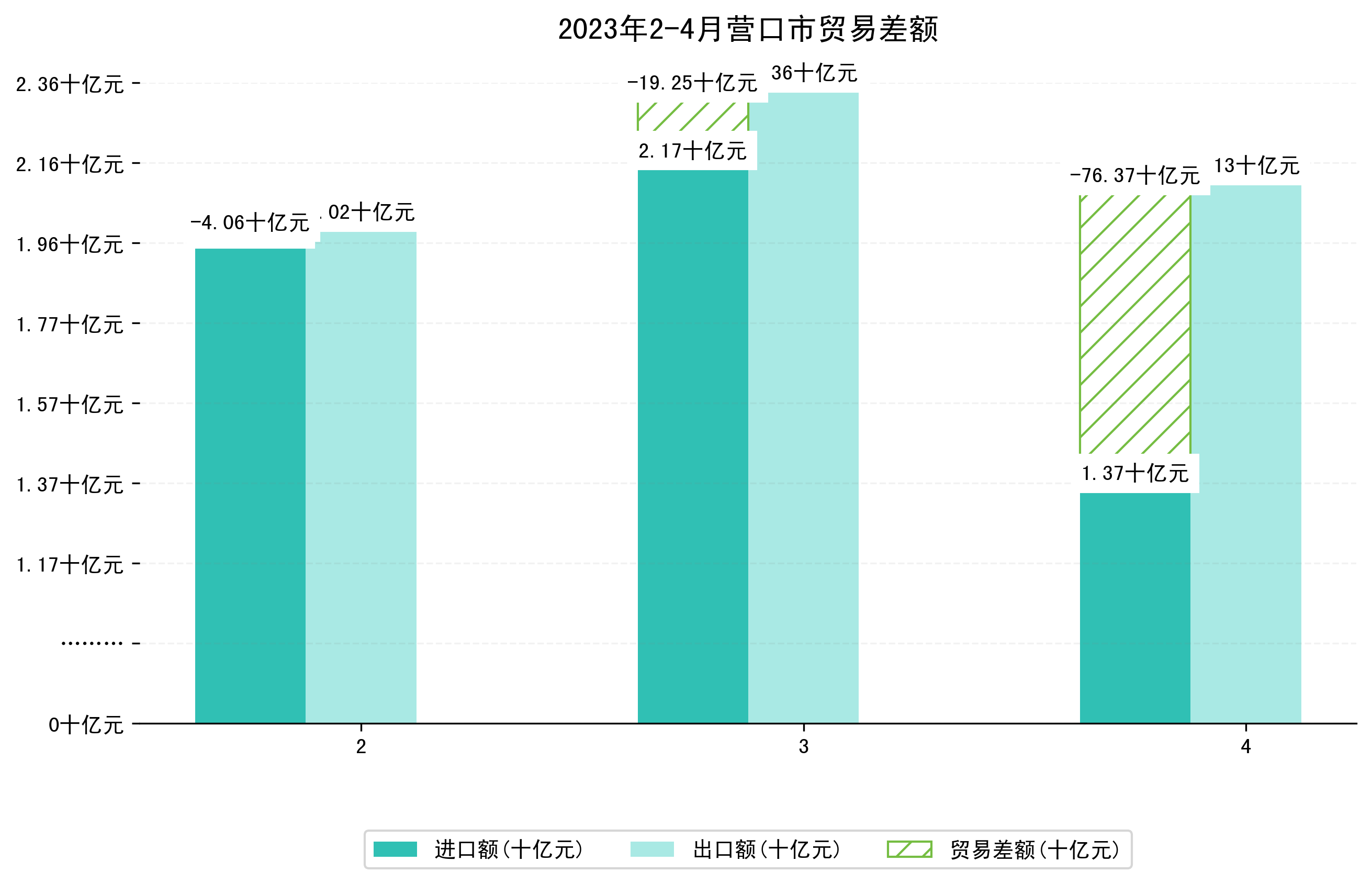 一、2023年4月营口市单月出口总额及进出口差额统计分析