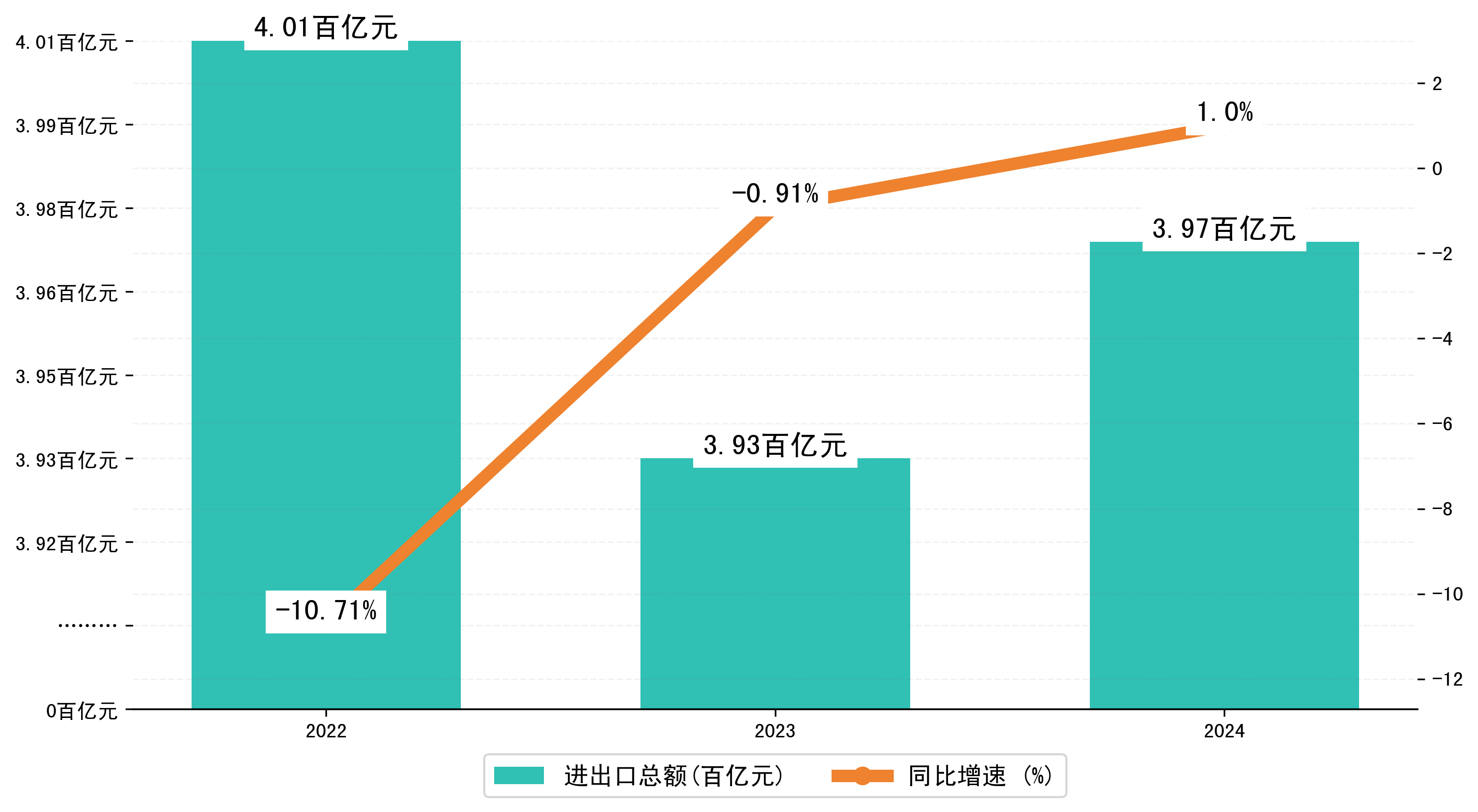以人民币计,2024年1-10月营口市进出口总额为397,0144.0836万元,相比上年同期增加了3,9144.3805万元,同比增加了0.90%。