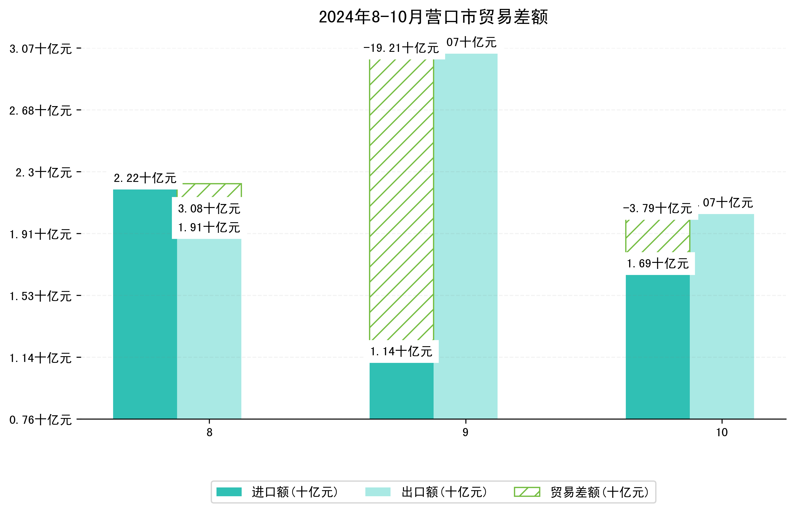 一、2024年10月营口市单月出口总额及进出口差额统计分析