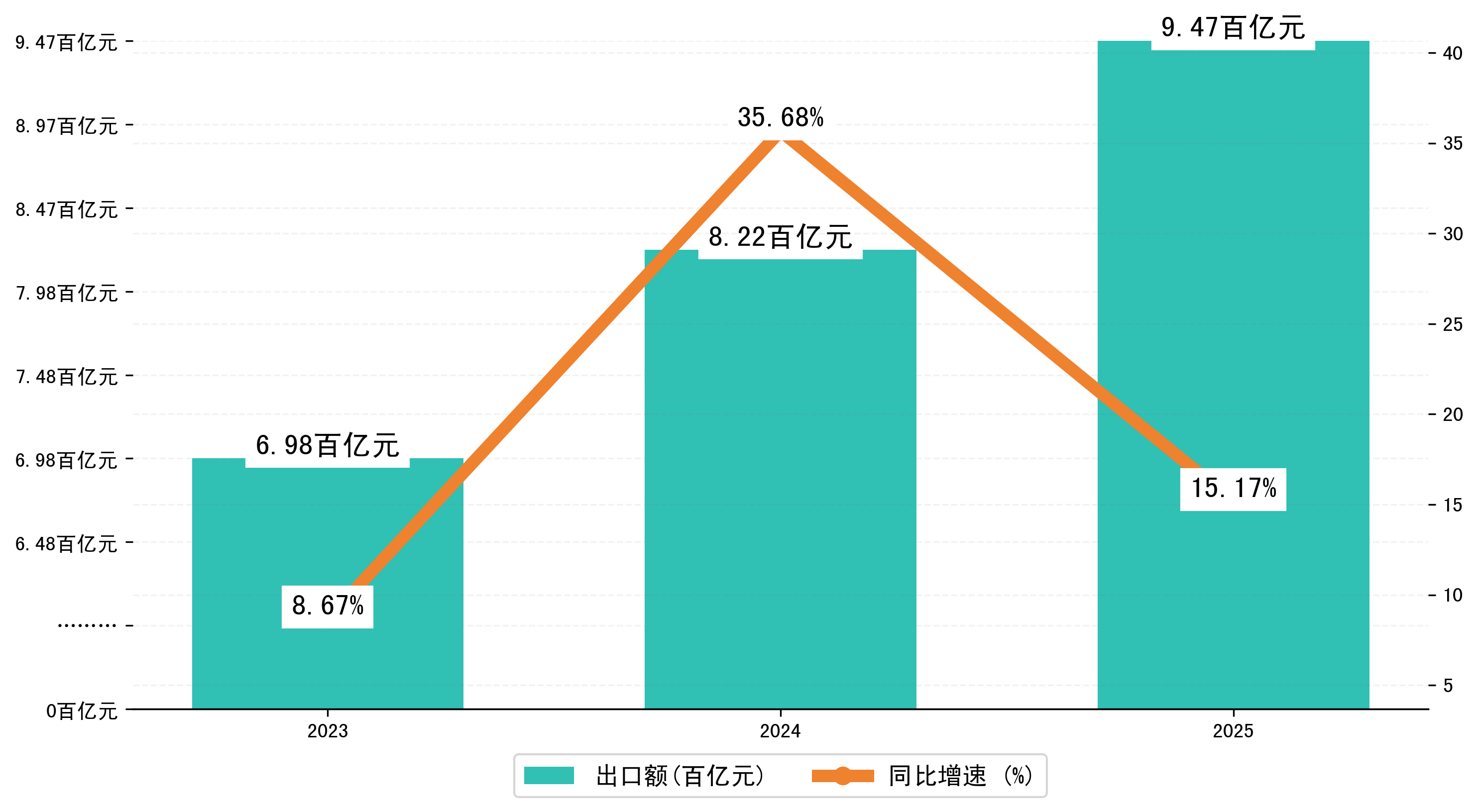以人民币计,2025年1-2月杭州市出口额为946,9531.4317万元,相比上年同期增加了124,7524.2337万元,同比增加了13.40%。