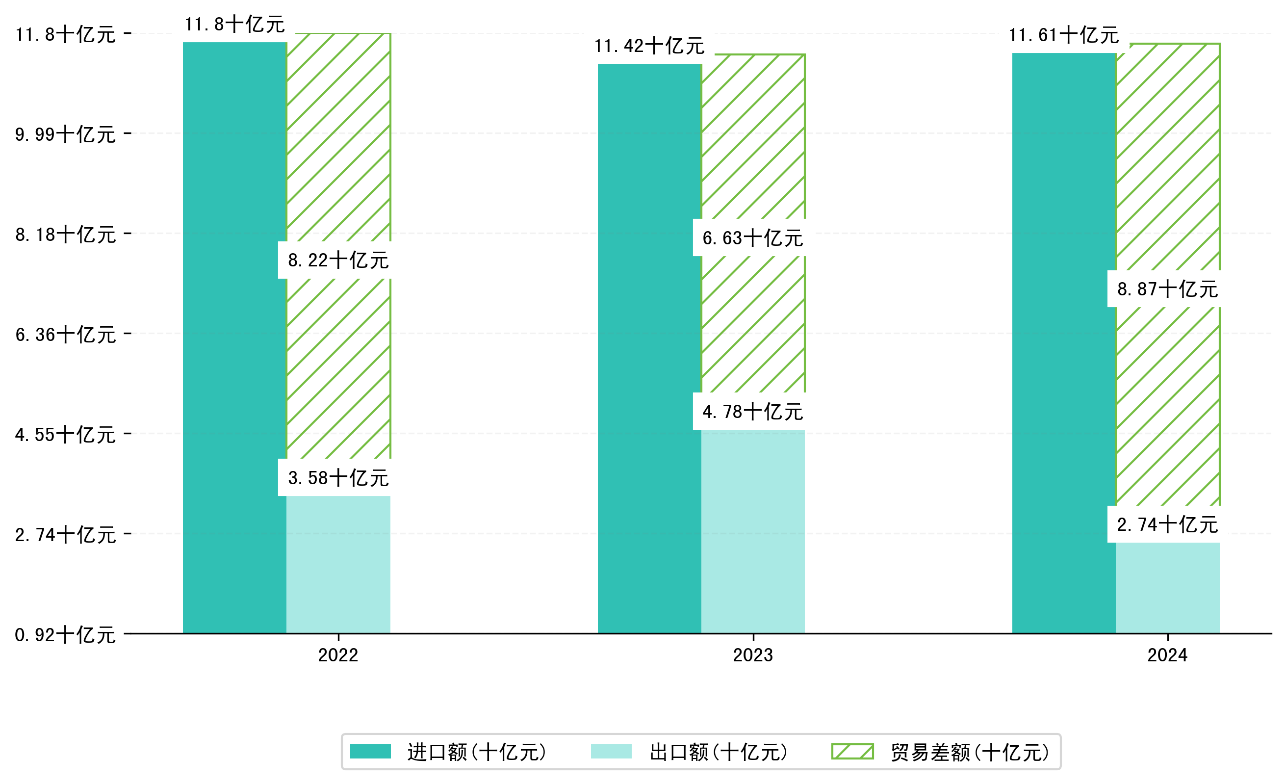 以人民币计,2024年1-4月鹰潭市贸易差额为88,7258,9557万元(贸易逆差),相比上年同期减少了22,4046,4969万元,同比减少33.78%。