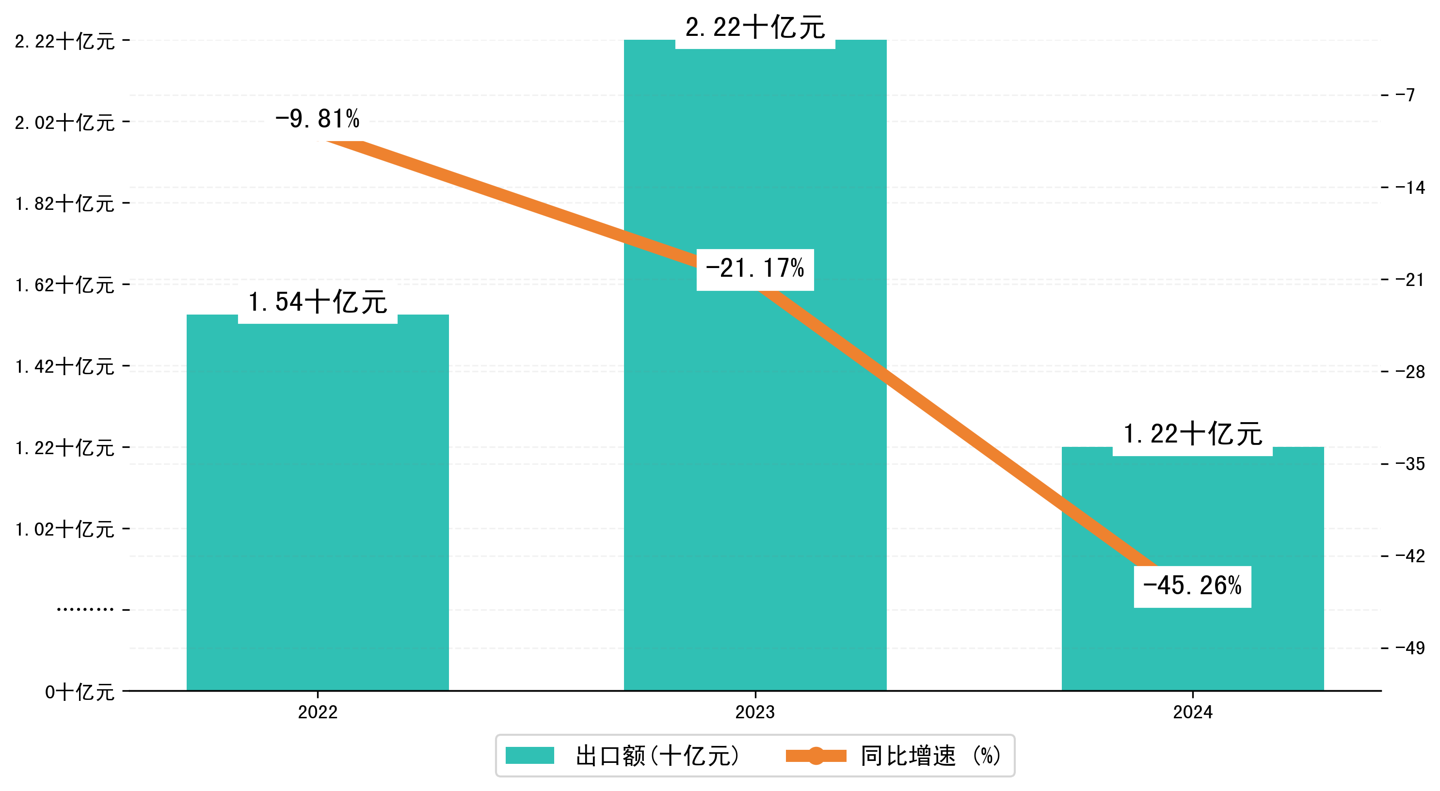 以美元计,2024年1-2月鹰潭市出口额为1,7141.2088万美元,相比上年同期减少了1,5018.0836万美元,同比减少-41.10%。