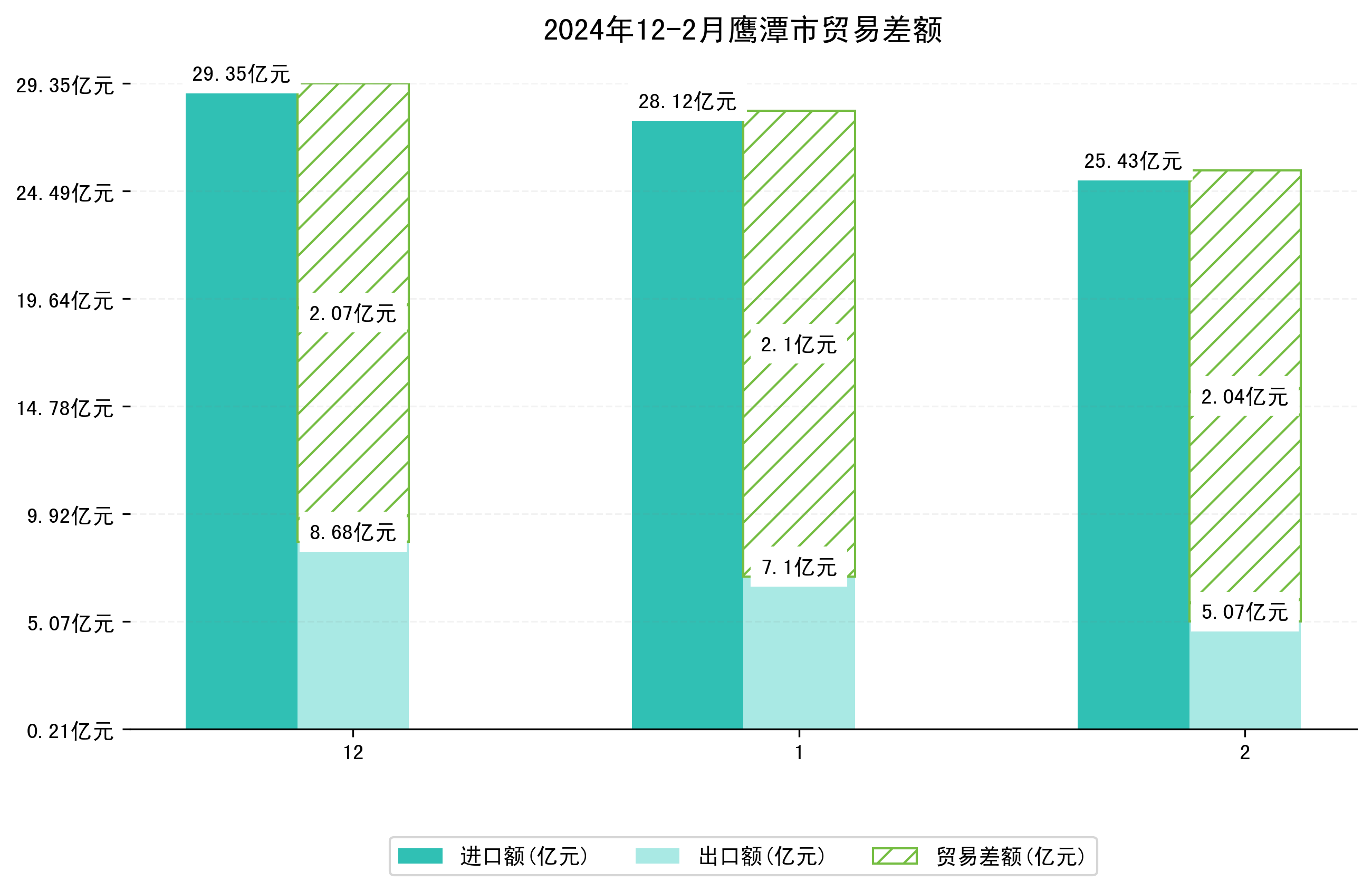 2024年2月鹰潭市进出口总额及进出口差额统计分析