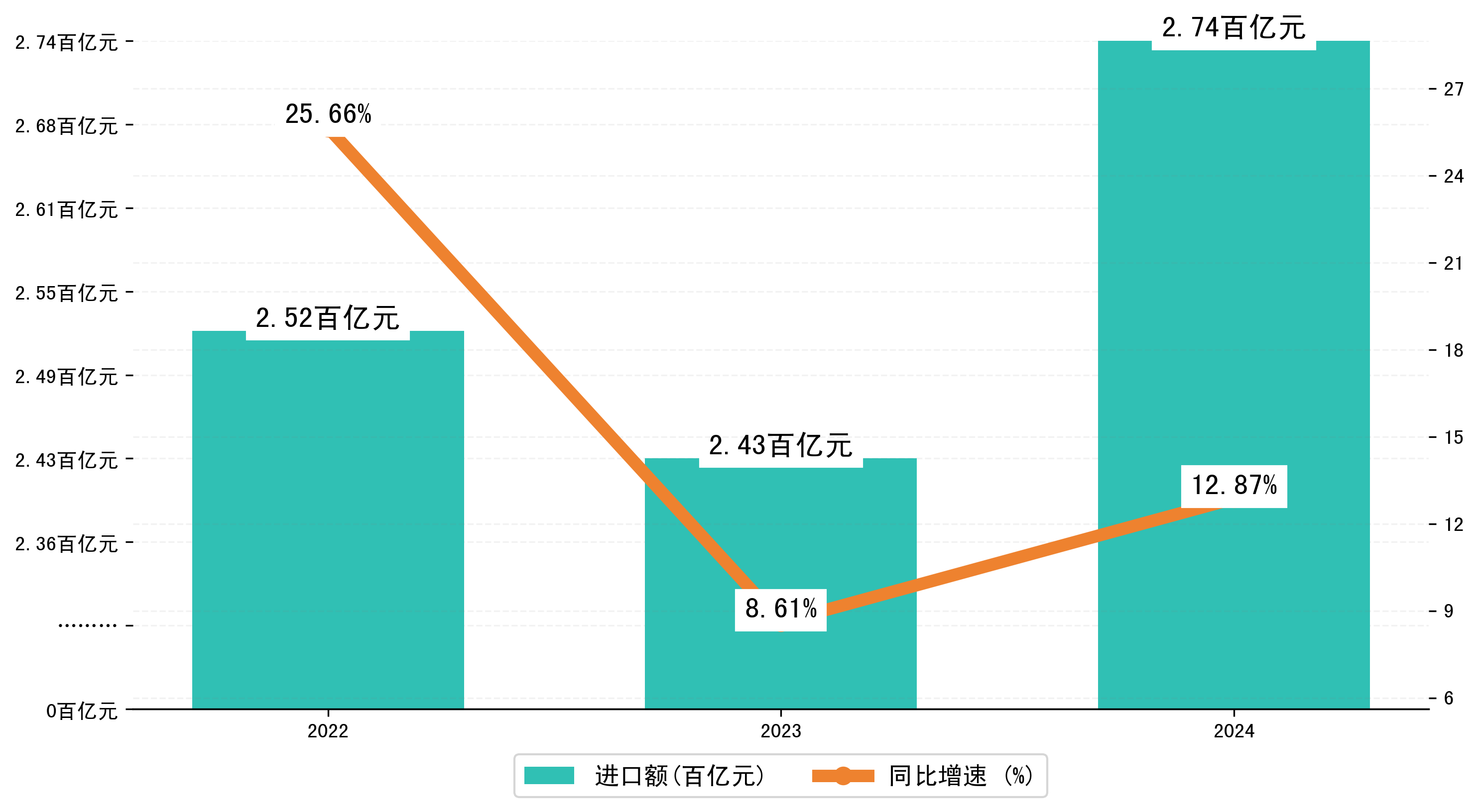 以人民币计,2024年1-9月鹰潭市进口额为273,9776.5636万元,相比上年同期增加了31,2449.9217万元,同比增加了14.40%。