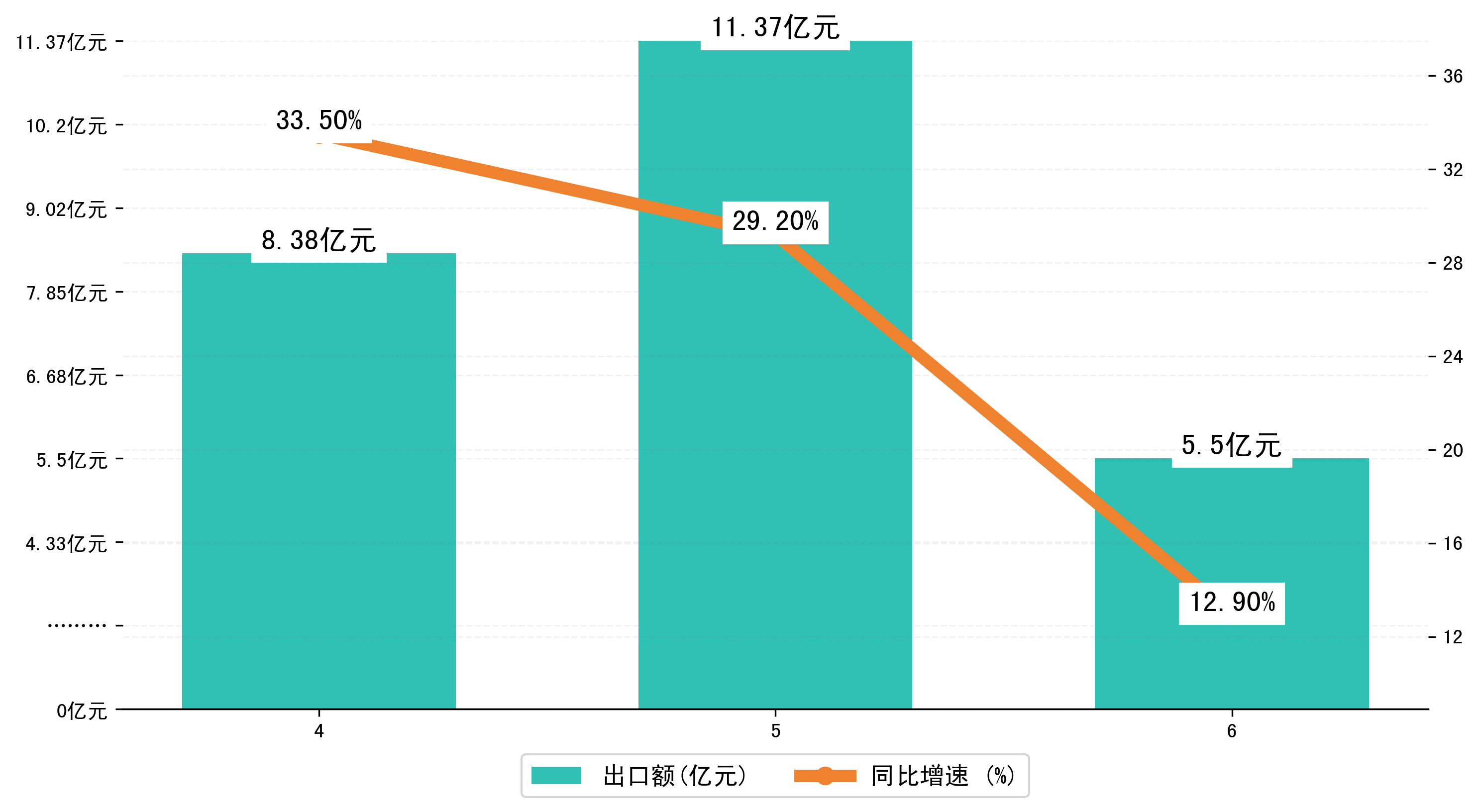 (图二:2023年4-6月鹰潭市出口额)