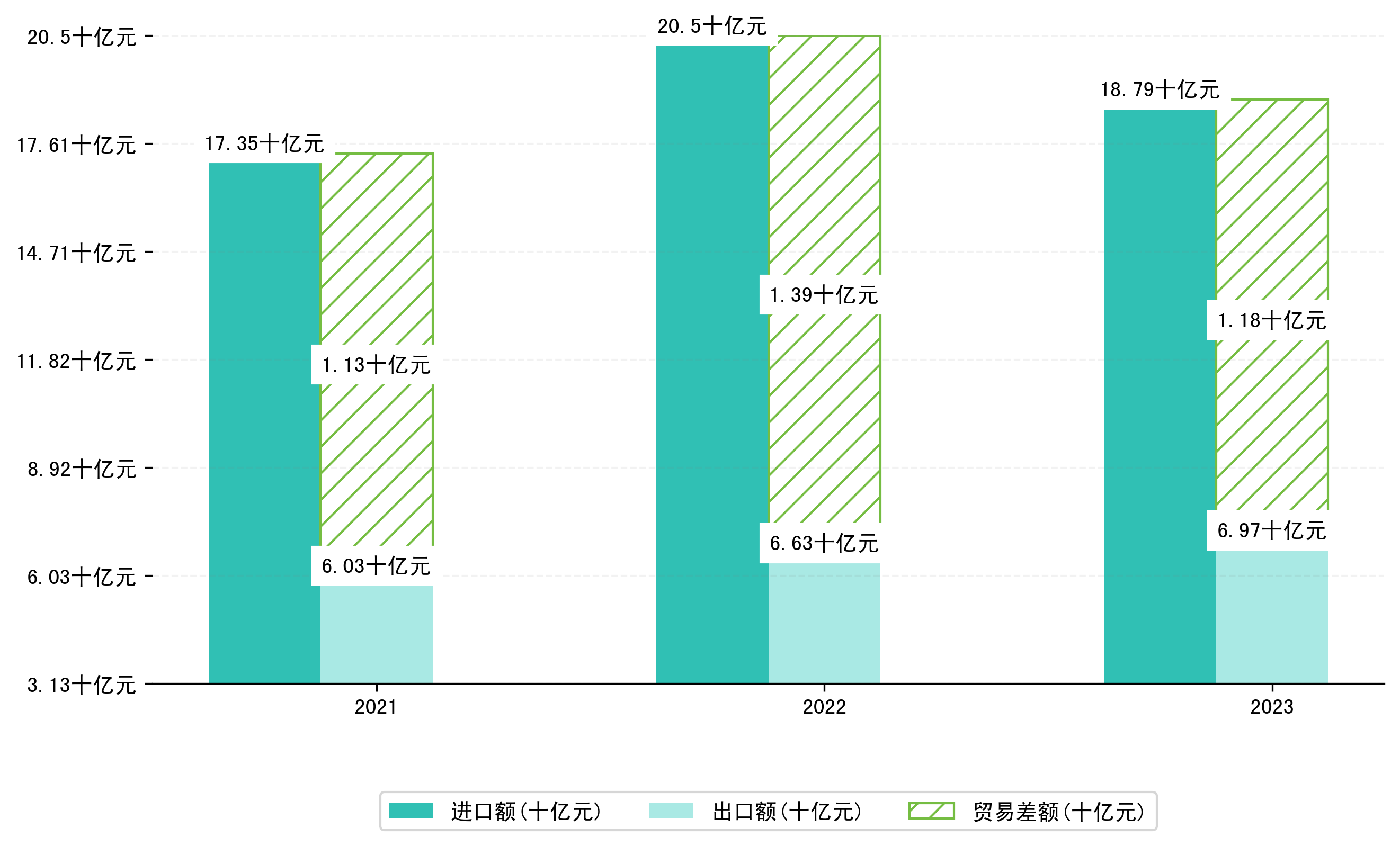 以美元计,2023年1-7月鹰潭市贸易差额为17,0531,9700万美元(贸易逆差),相比上年同期增加了4,3970,6164万美元,同比增加-20.5%。