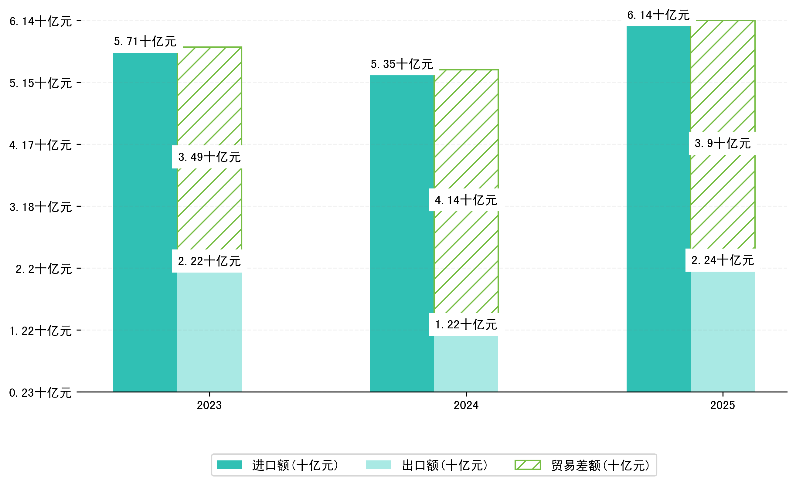 以美元计,2025年2月鹰潭市贸易差额为1,9337,3733万美元(贸易逆差),相比上月增加了1,5624,7878万美元;相比上年同期增加了9297,0368万美元,同比增加-32.47%。