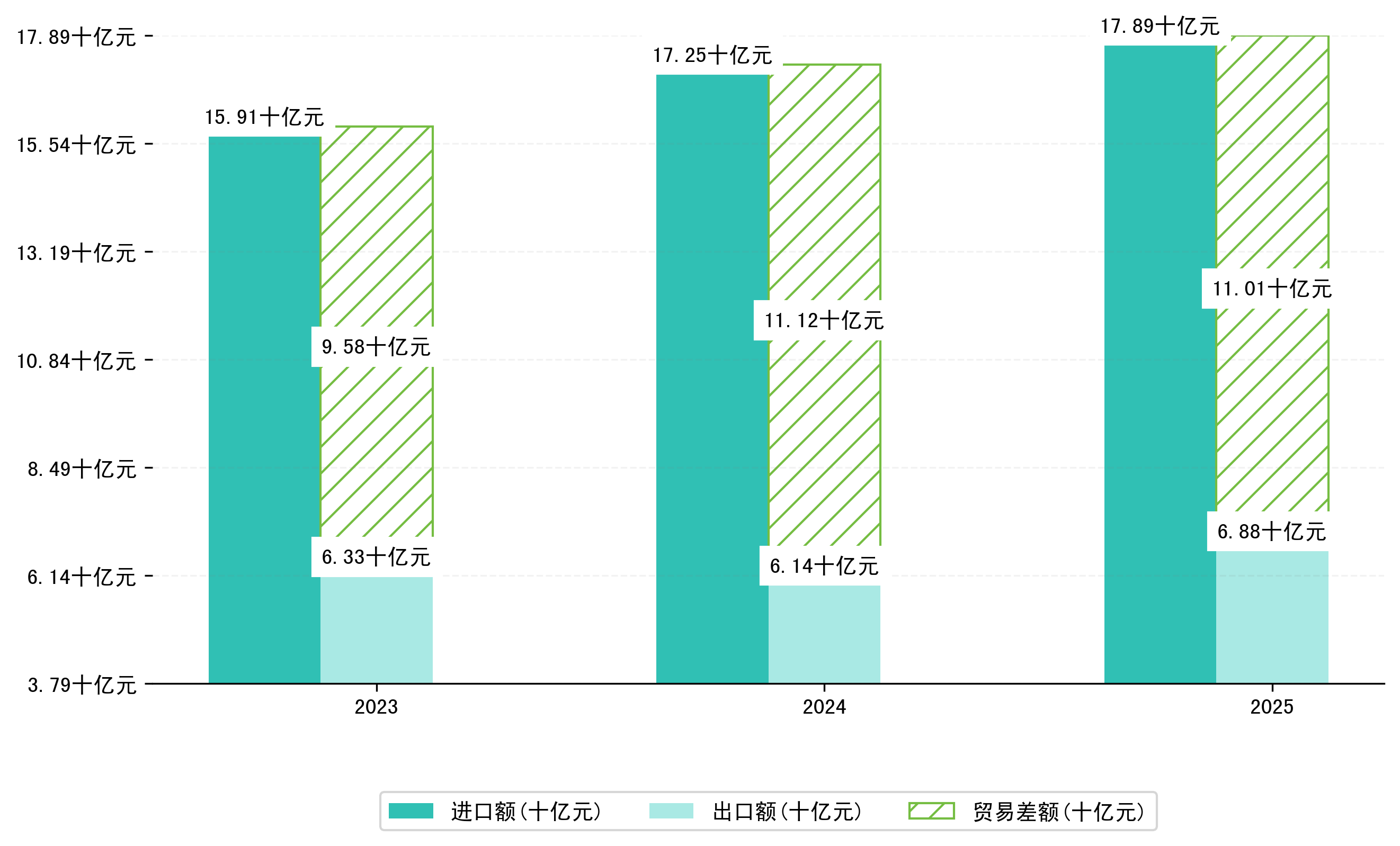 以人民币计,2025年6月鹰潭市贸易差额为14,6861,6018万元(贸易逆差),相比上月增加了6,0437,1920万元,即8388,3382万美元;相比上年同期减少了8,1278,1702万元,同比减少123.93%。