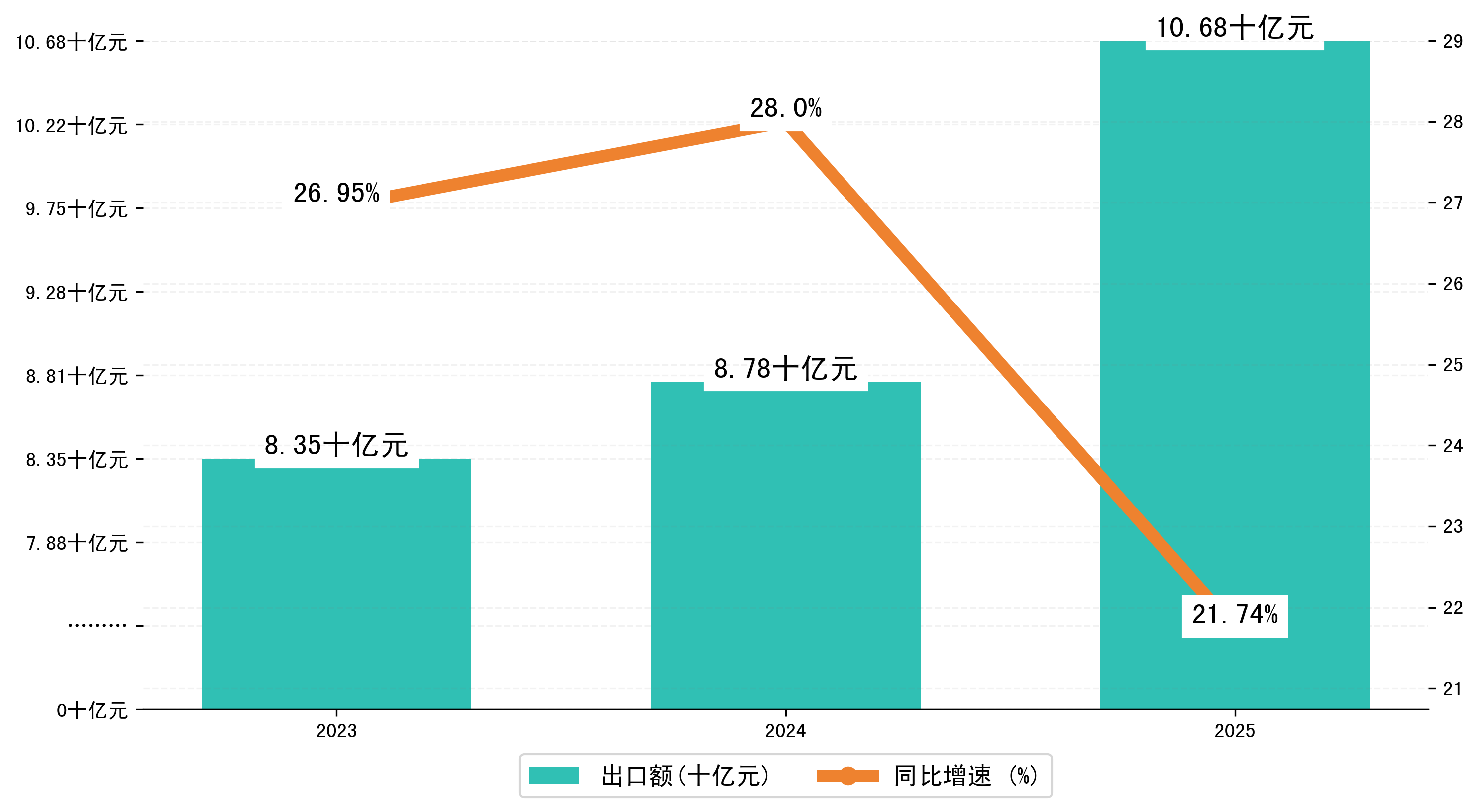 以人民币计,2025年1-9月鹰潭市出口额为106,8318.5086万元,相比上年同期增加了19,0771.0554万元,同比增加了21.70%。