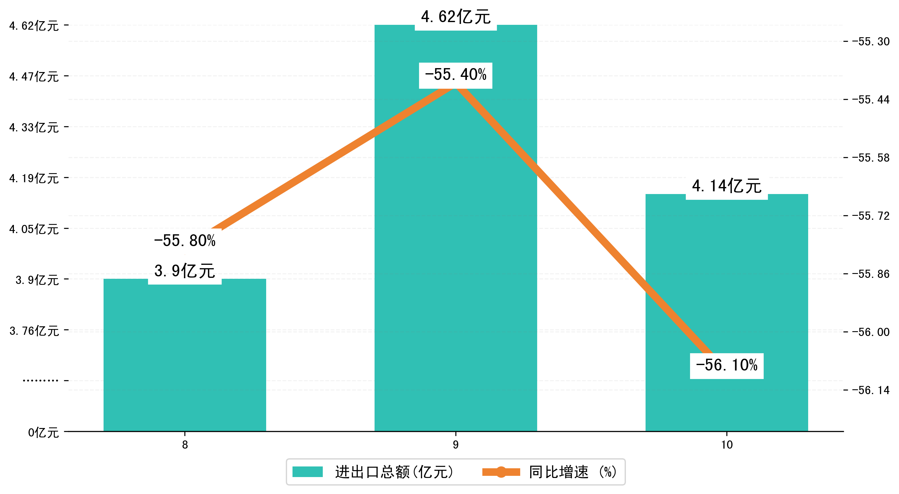 (图一:2023年8-10月益阳市进出口总额)