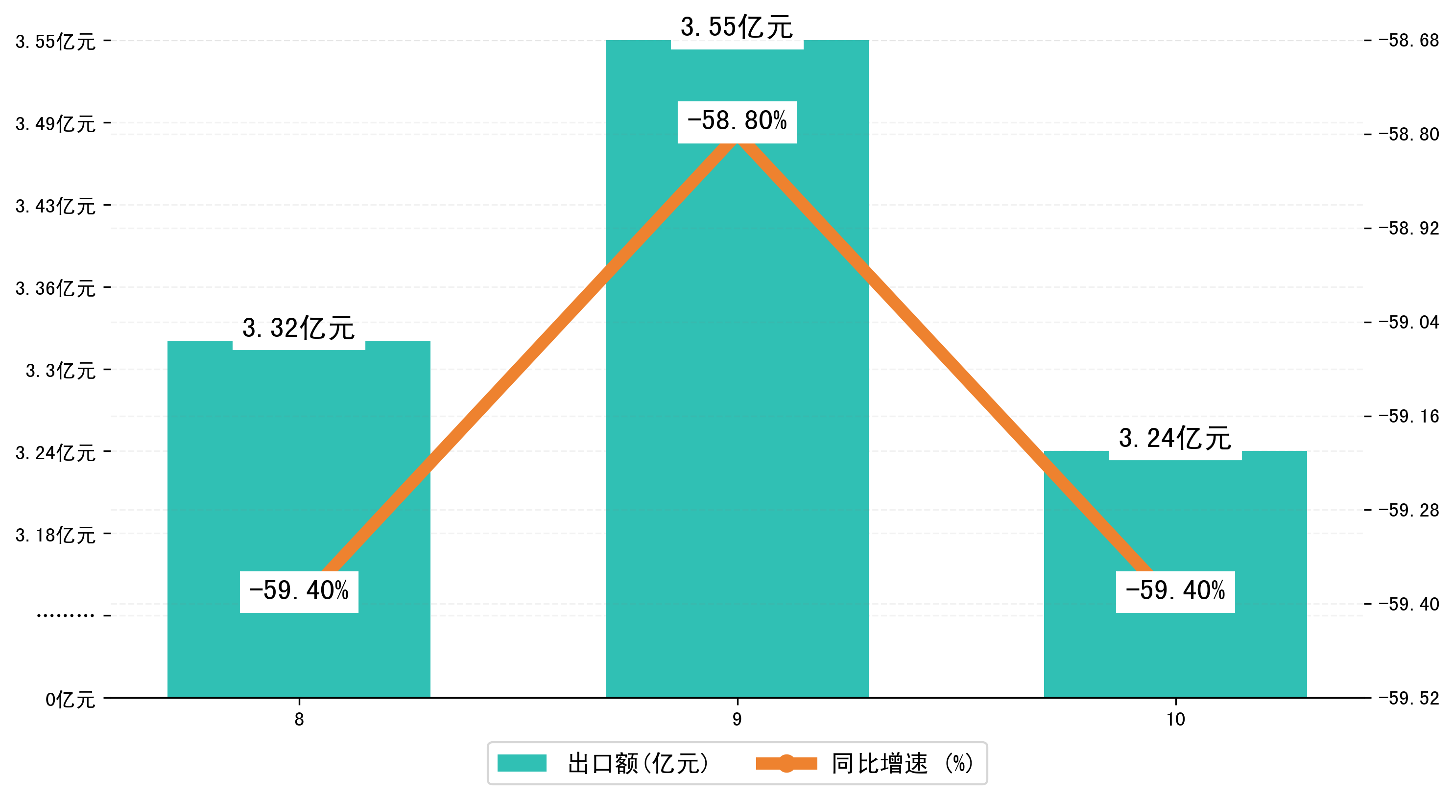 (图二:2023年8-10月益阳市出口额)
