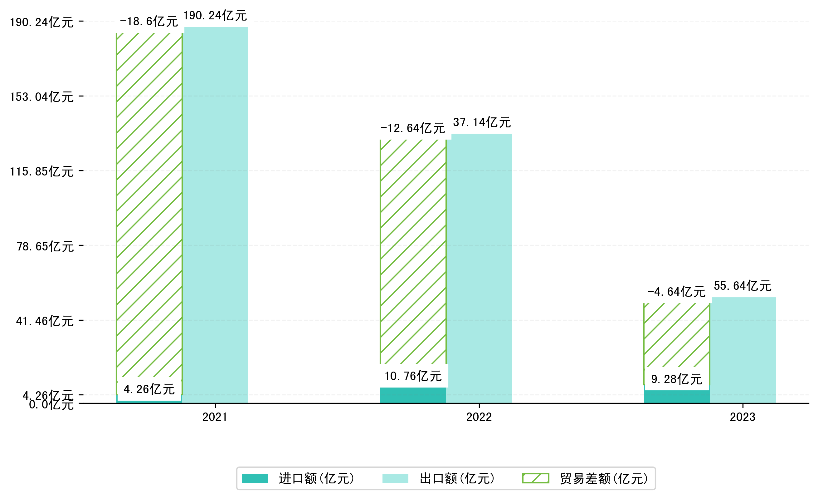 以人民币计,2023年10月益阳市贸易差额为2,3404,0352万元(贸易顺差),相比上月减少了1407,9770万元,即189,2267万美元;相比上年同期减少了5,6266,3059万元,同比减少-70.62%。