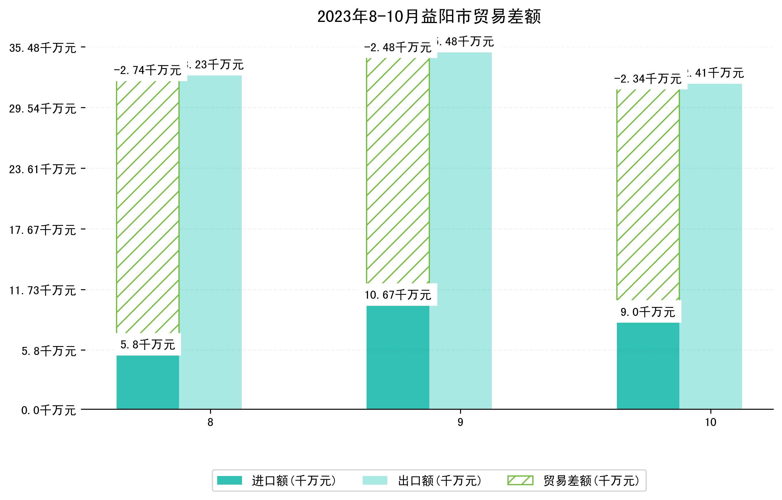 (图四:2023年8-10月益阳市贸易差额)
