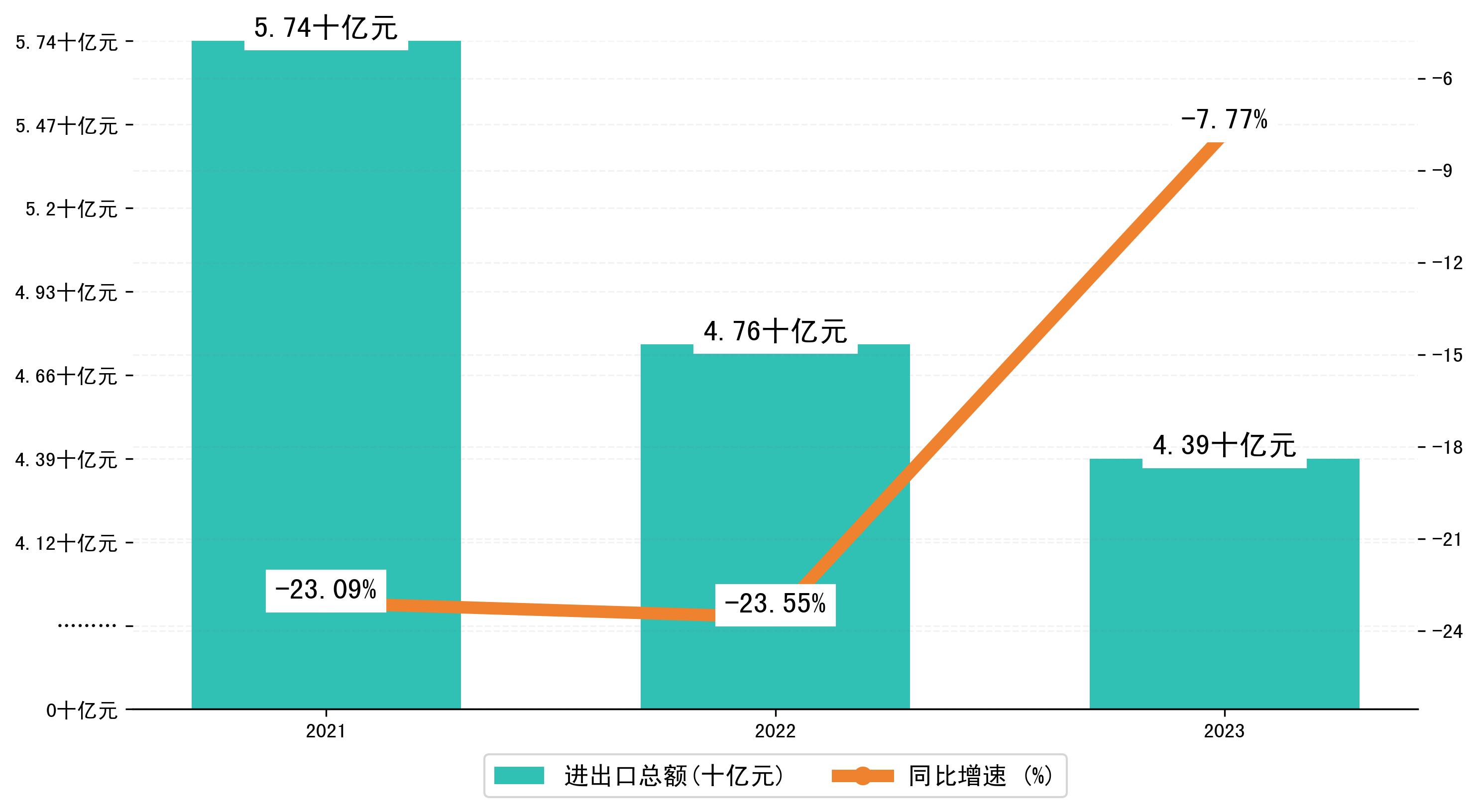 以人民币计,2023年1-5月益阳市进出口总额为43,9120.3365万元,相比上年同期减少了3,6977.0962万元,同比减少了-7.80%。