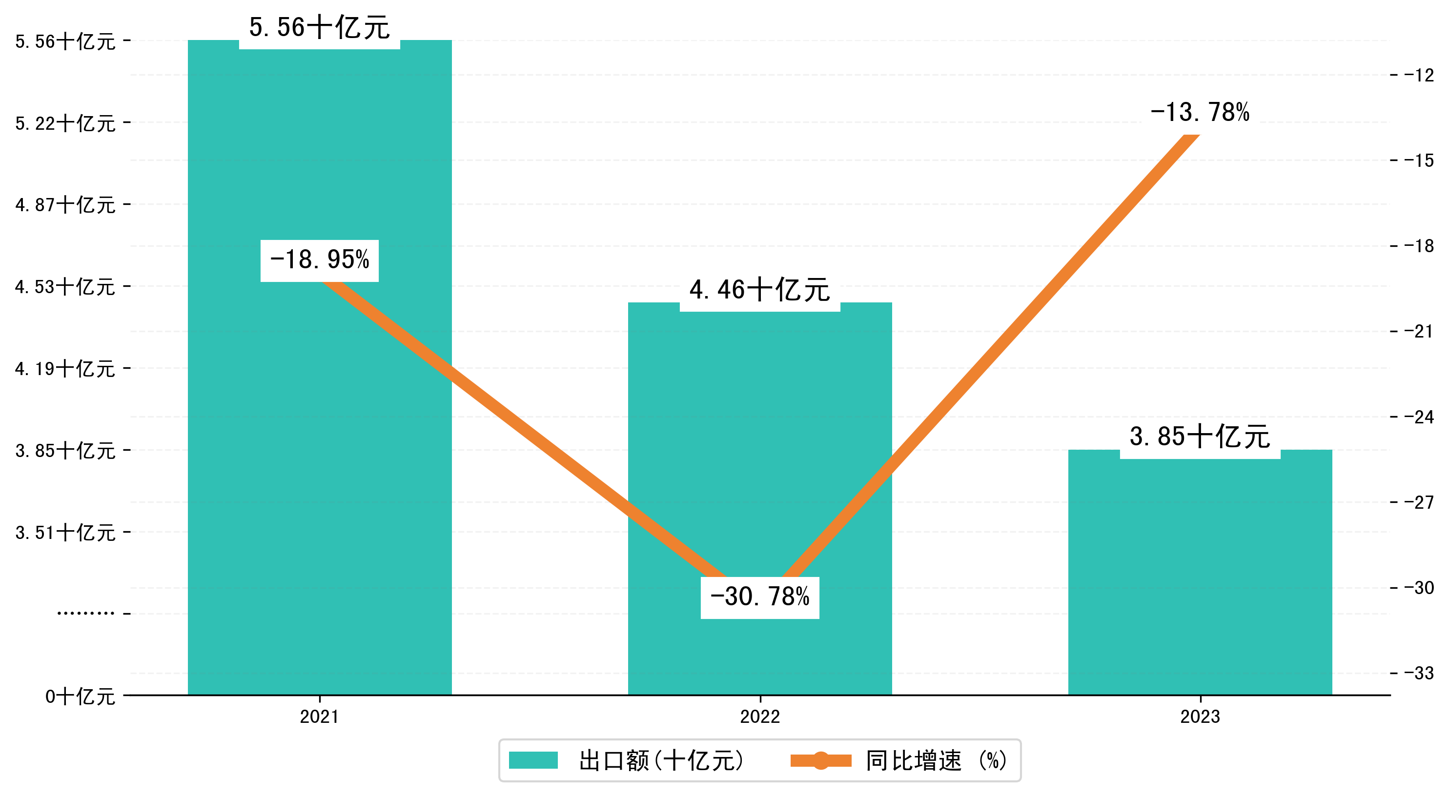 以美元计,2023年1-5月益阳市出口额为5,5743.4755万美元,相比上年同期减少了1,4188.7475万美元,同比减少-20.30%。
