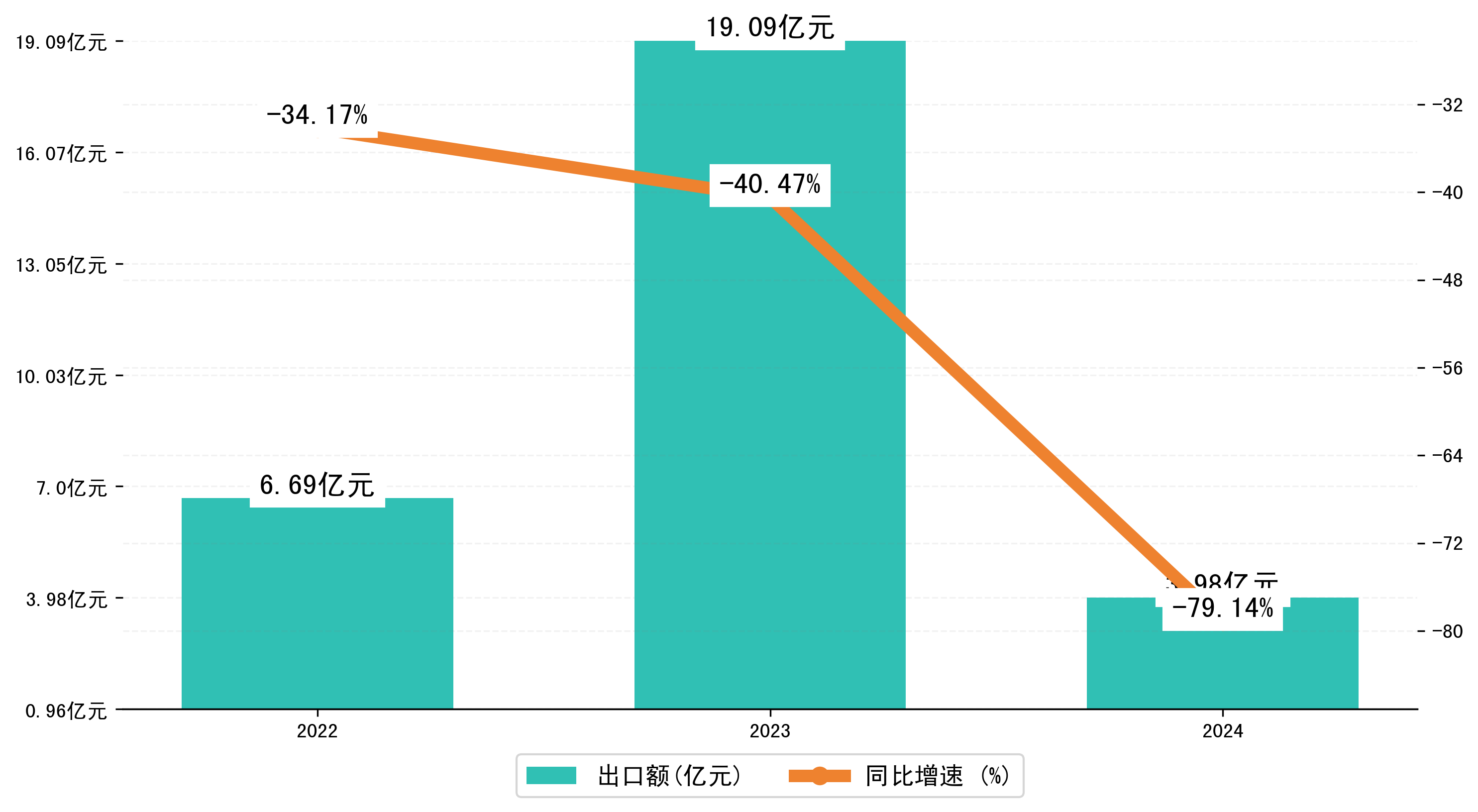 以人民币计,2024年1-1月益阳市出口额为3,9827.1367万元,相比上年同期减少了15,1082.0521万元,同比减少了-79.10%。