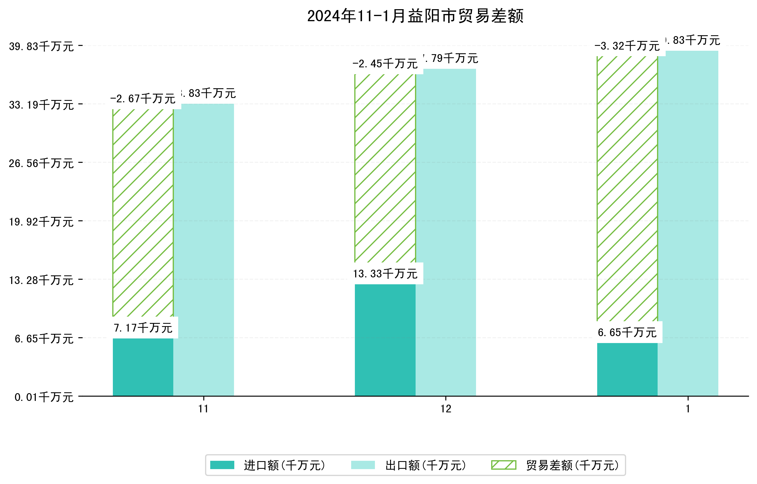 2024年1月益阳市进出口总额及进出口差额统计分析