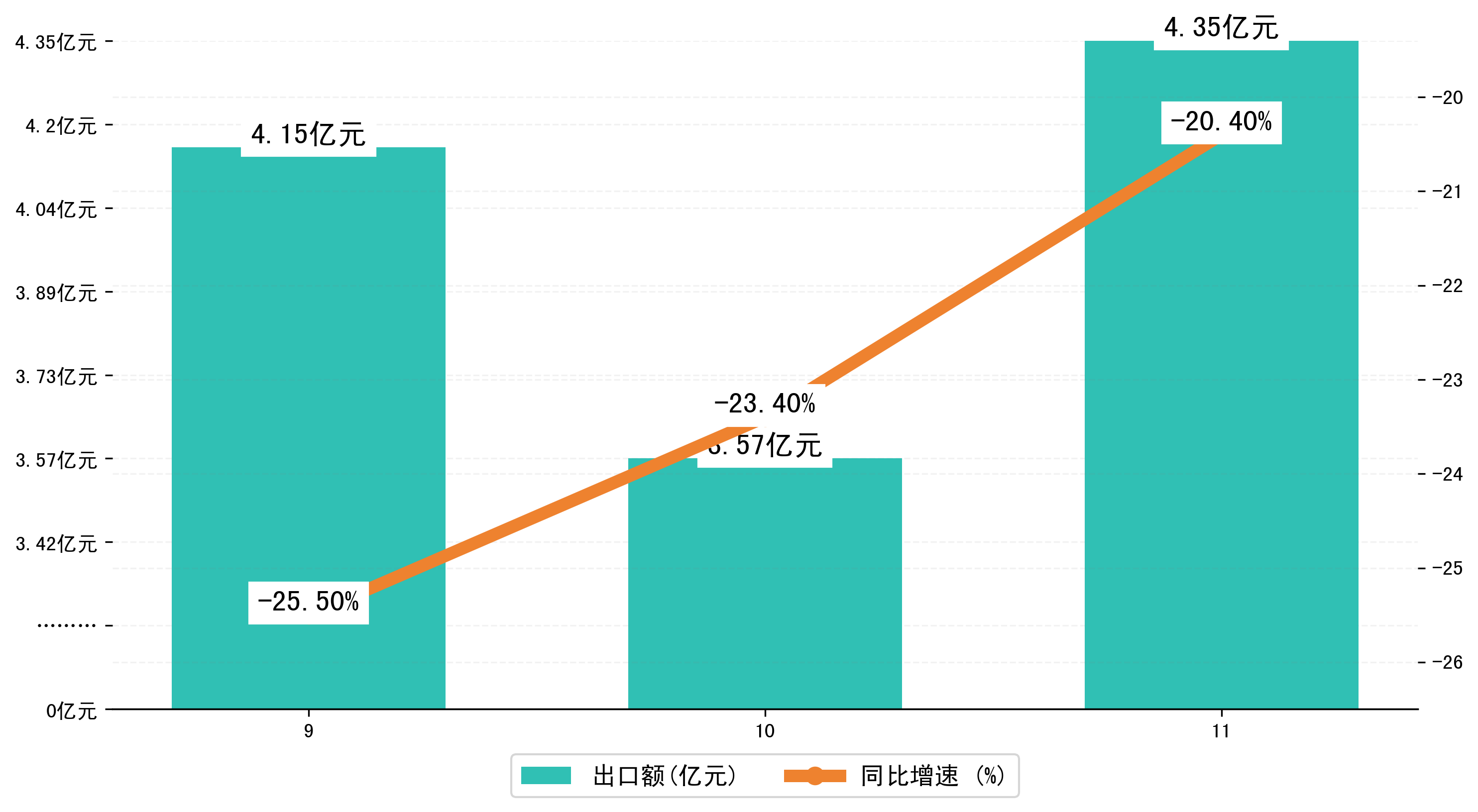 一、2024年11月益阳市单月出口总额及进出口差额统计分析