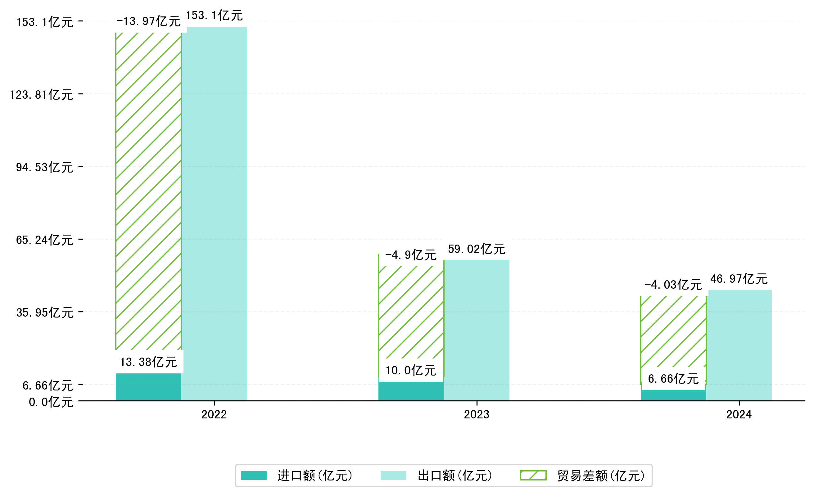 以人民币计,2024年1-11月益阳市出口额为46,9660.6327万元,相比上年同期减少了12,0549.252万元,同比减少了-20.40%。