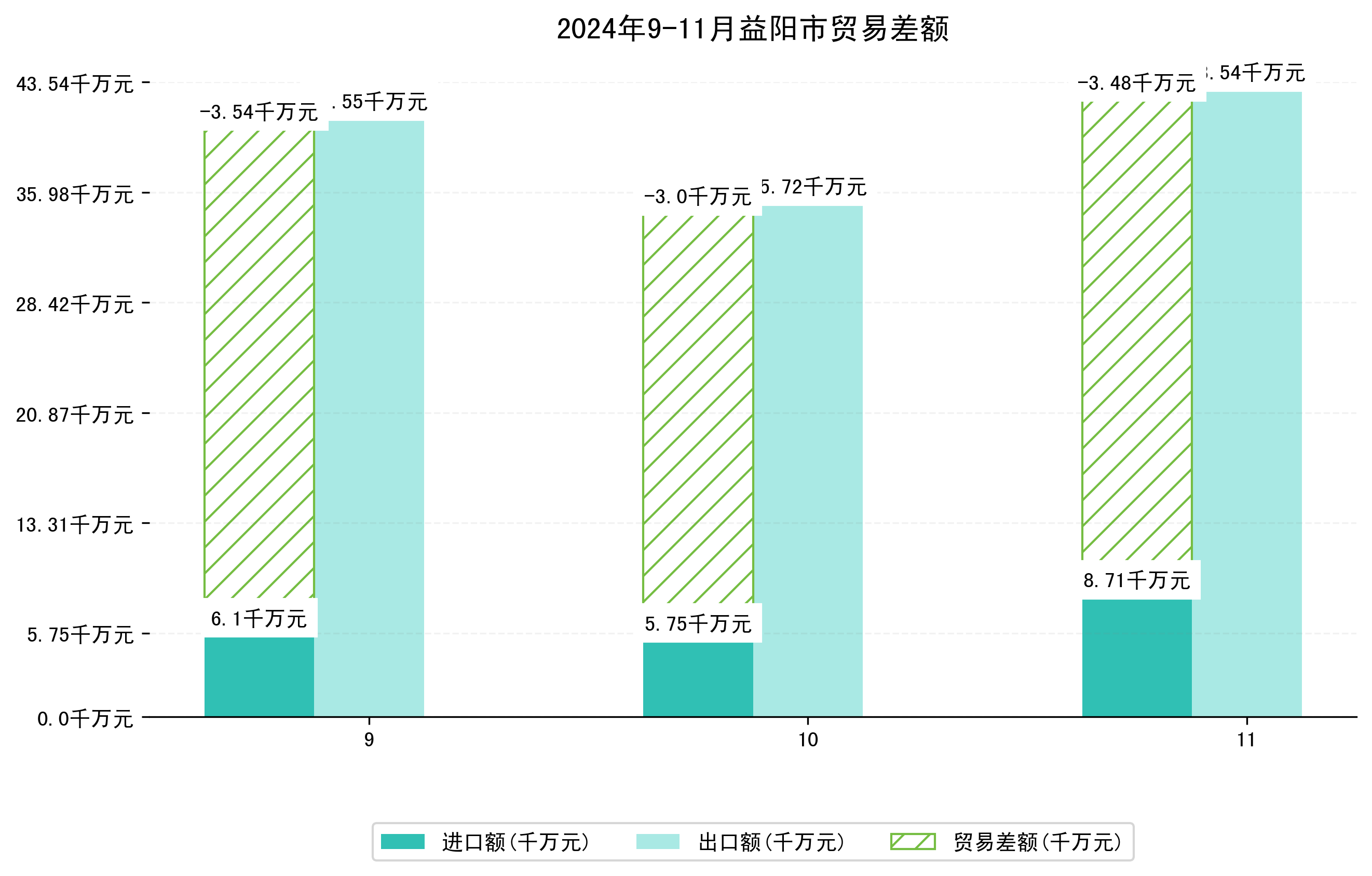 2024年11月益阳市进出口总额及进出口差额统计分析