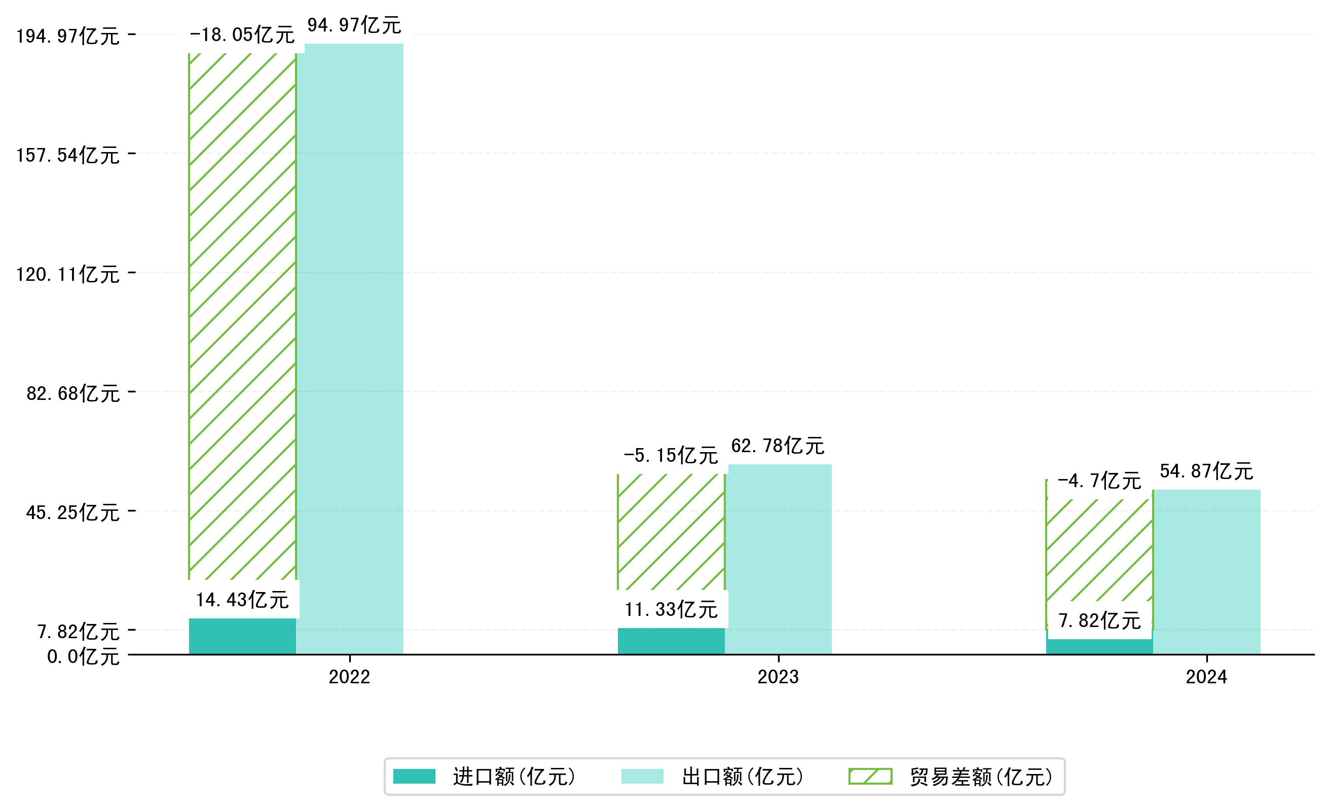 以人民币计,2024年1-12月益阳市贸易差额为47,0458,9304万元(贸易顺差),相比上年同期减少了4,4041,6845万元,同比减少-8.56%。