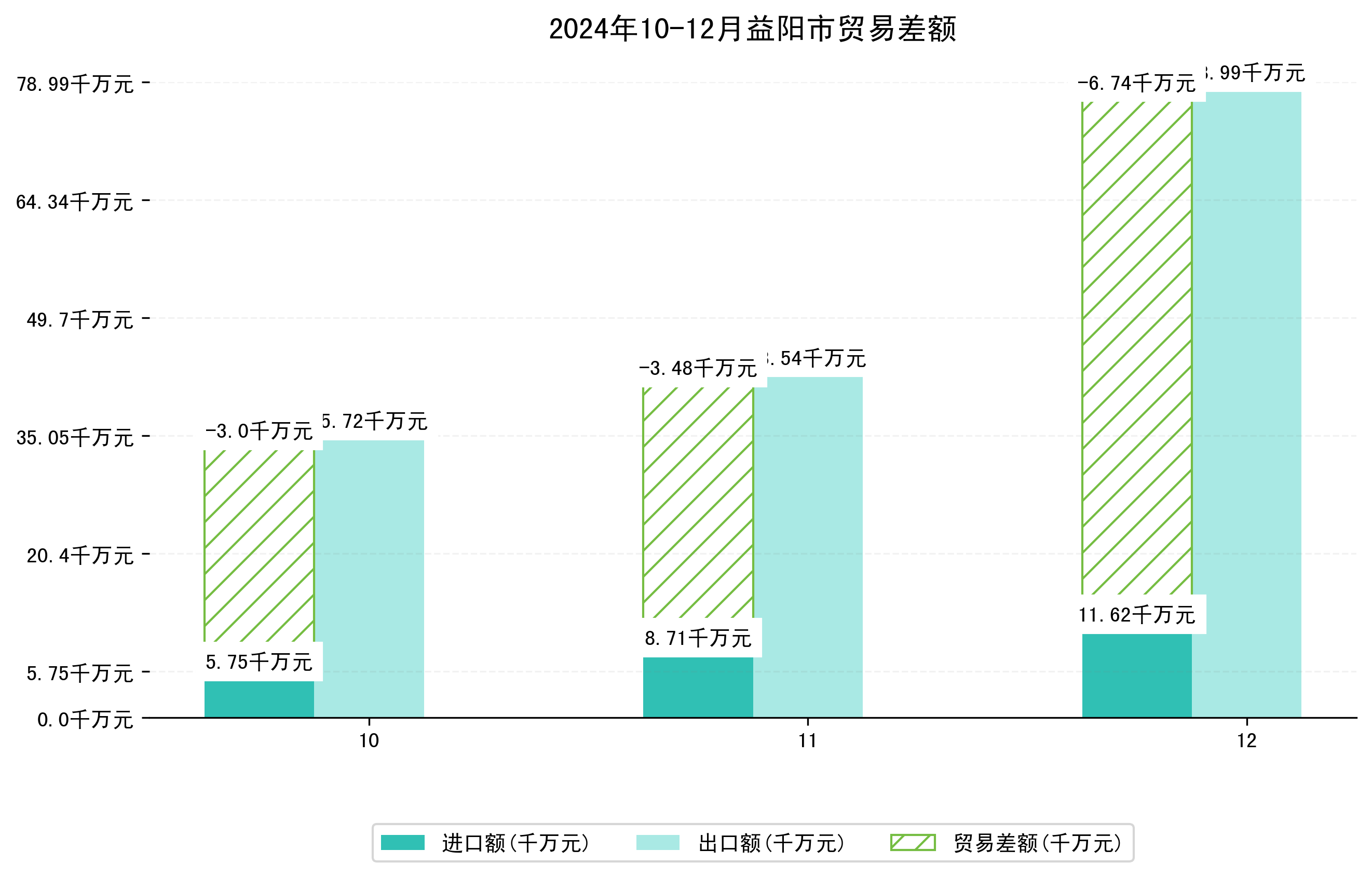 2024年12月益阳市进出口总额及进出口差额统计分析