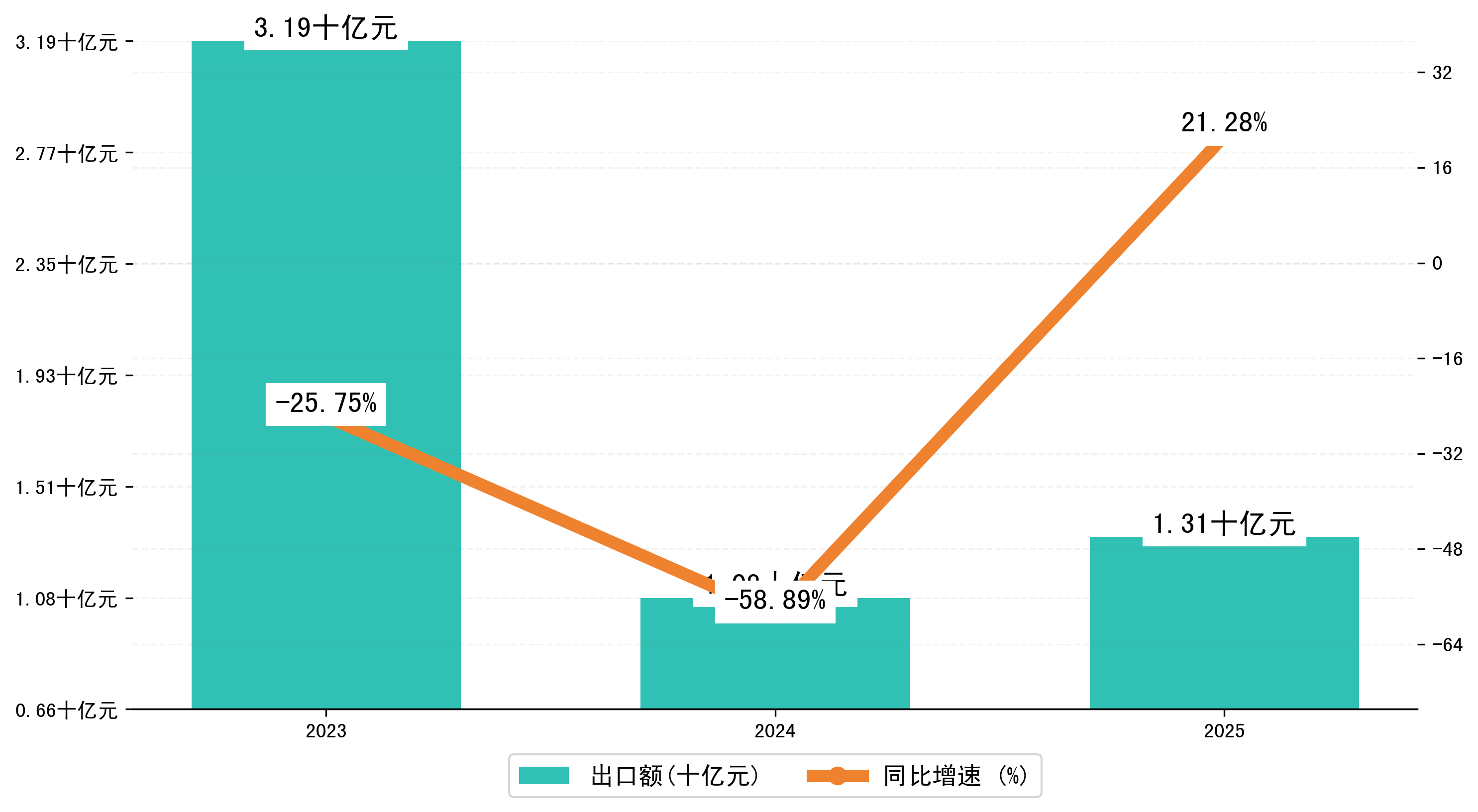 以美元计,2025年1-3月益阳市出口额为1,8285.5244万美元,相比上年同期增加了3044.1076万美元,同比增加20.50%。