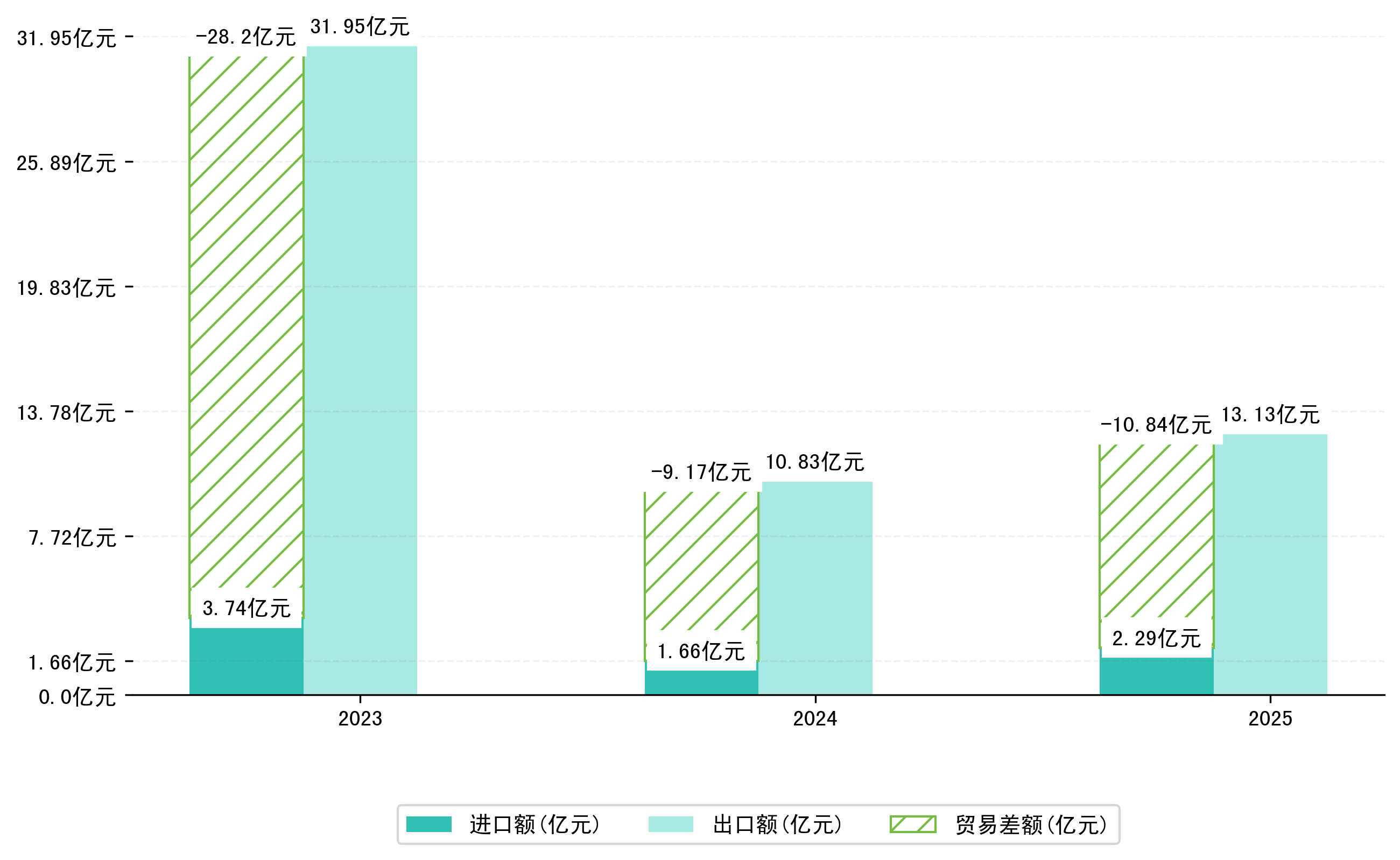 以美元计,2025年1-3月益阳市贸易差额为1,5090,1342万美元(贸易顺差),相比上年同期增加了2187,6179万美元,同比增加16.95%。