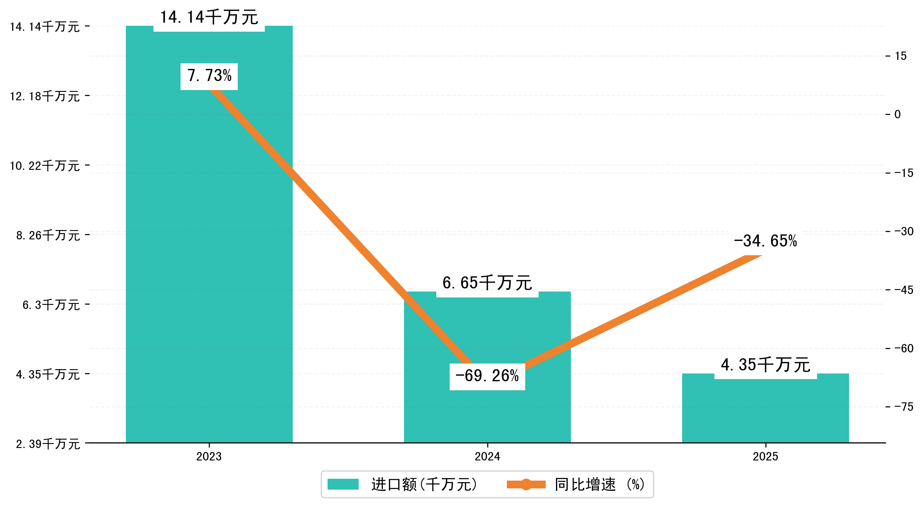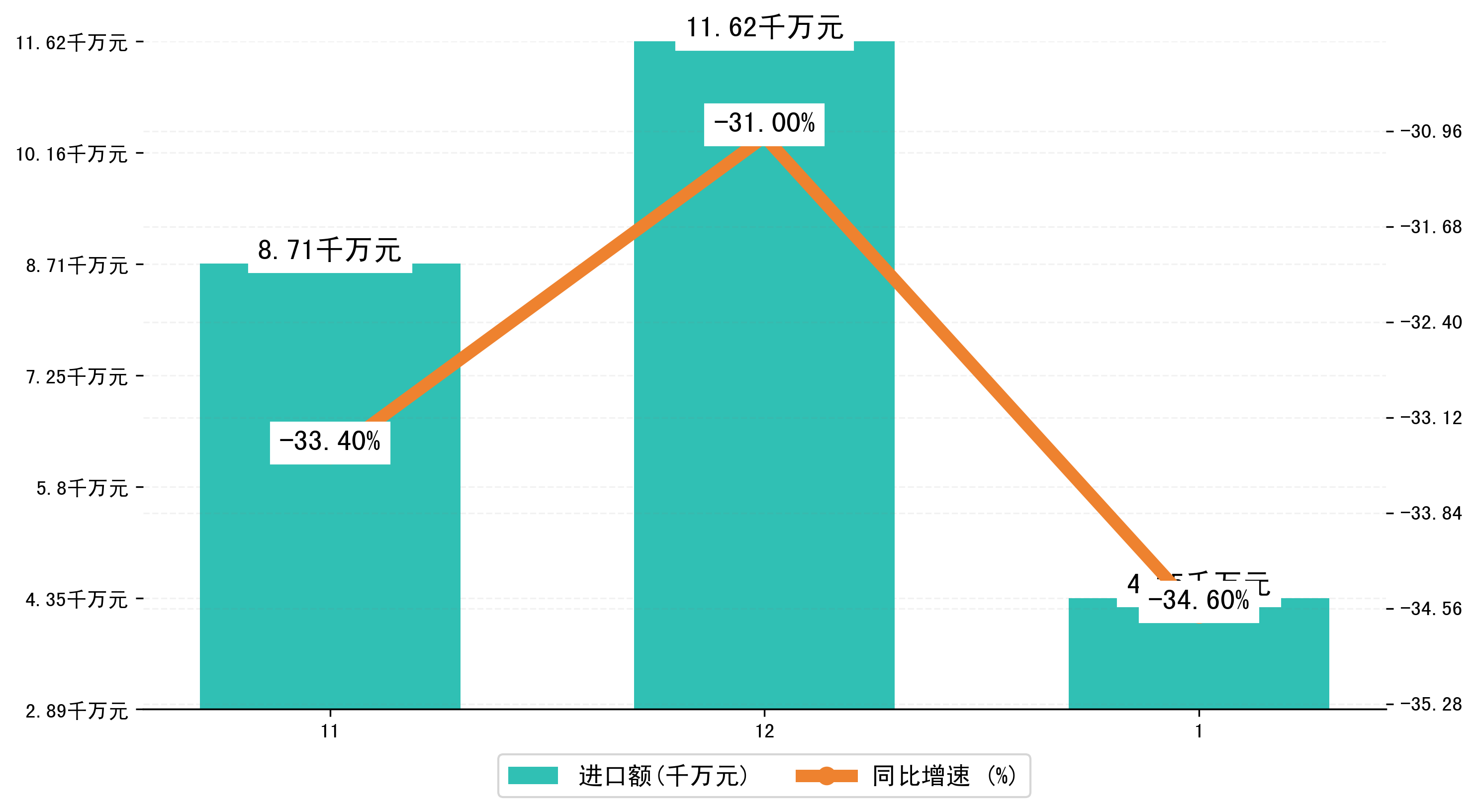 以人民币计,2025年1月益阳市进口额为4345.2364万元,相比上月减少了7273.3344万元;相比上年同期减少了2303.8117万元,同比减少了-34.60%。