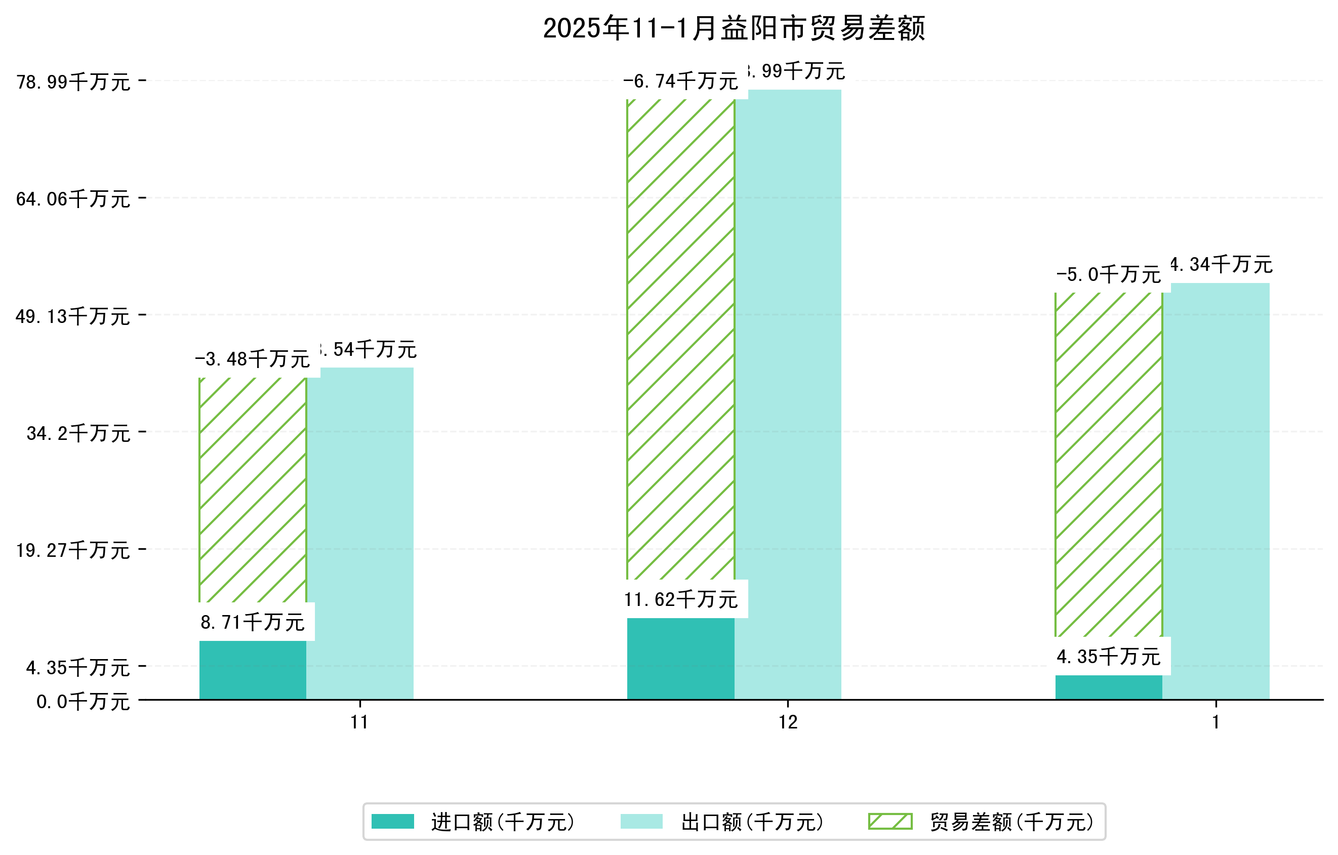 2025年1月益阳市进出口总额及进出口差额统计分析