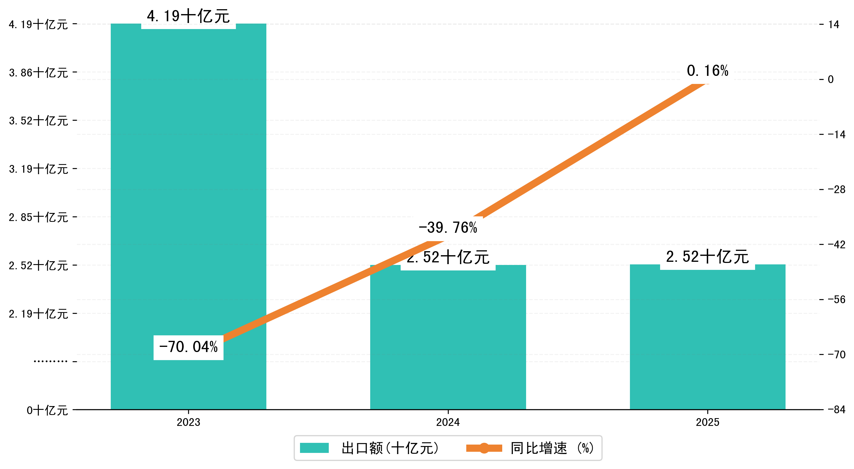 以人民币计,2025年1-6月益阳市出口额为25,2413.7944万元,相比上年同期增加了408.8661万元,同比增加了0.40%。