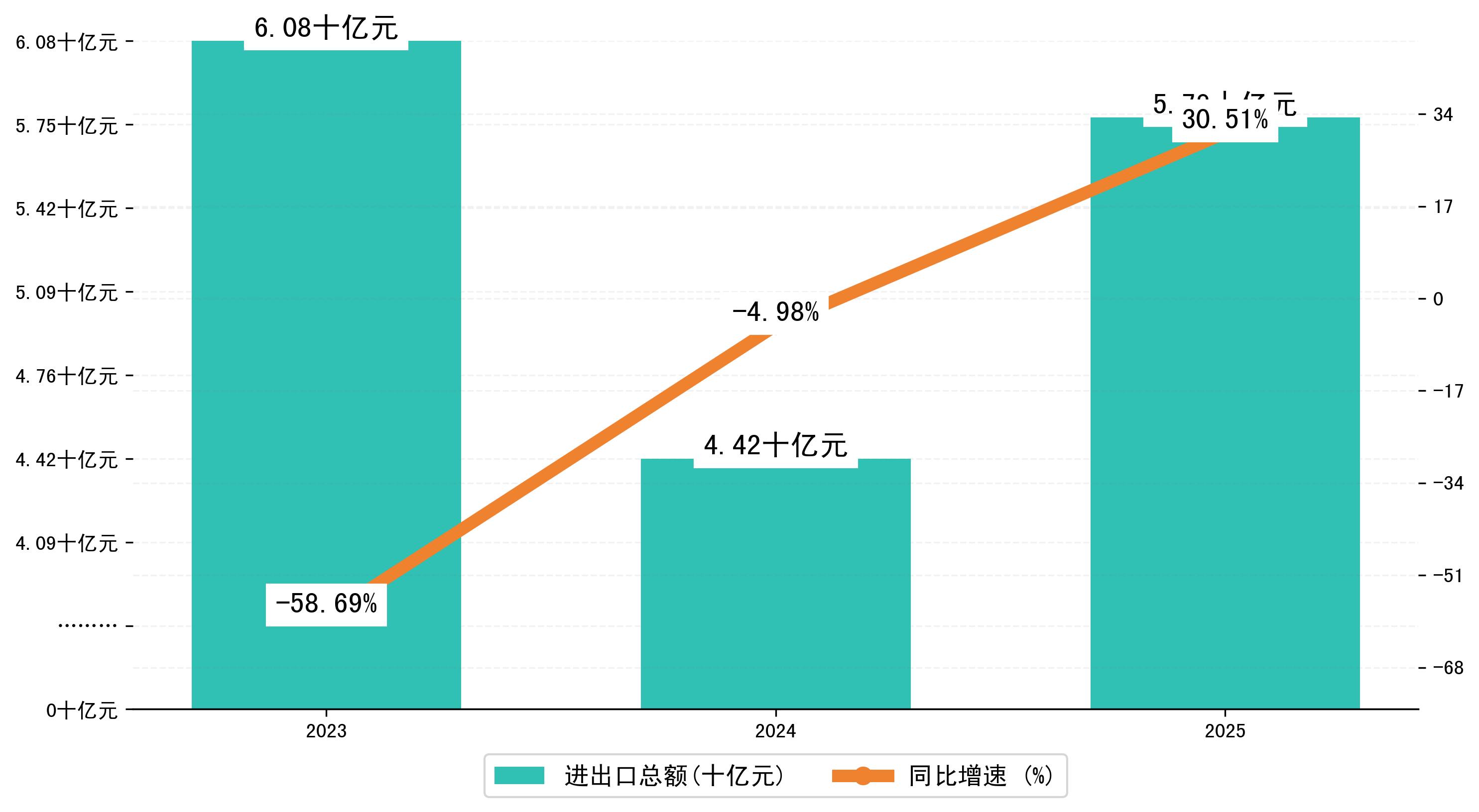 以人民币计,2025年1-9月益阳市进出口总额为57,7500.4123万元,相比上年同期增加了13,5020.9752万元,同比增加了30.50%。