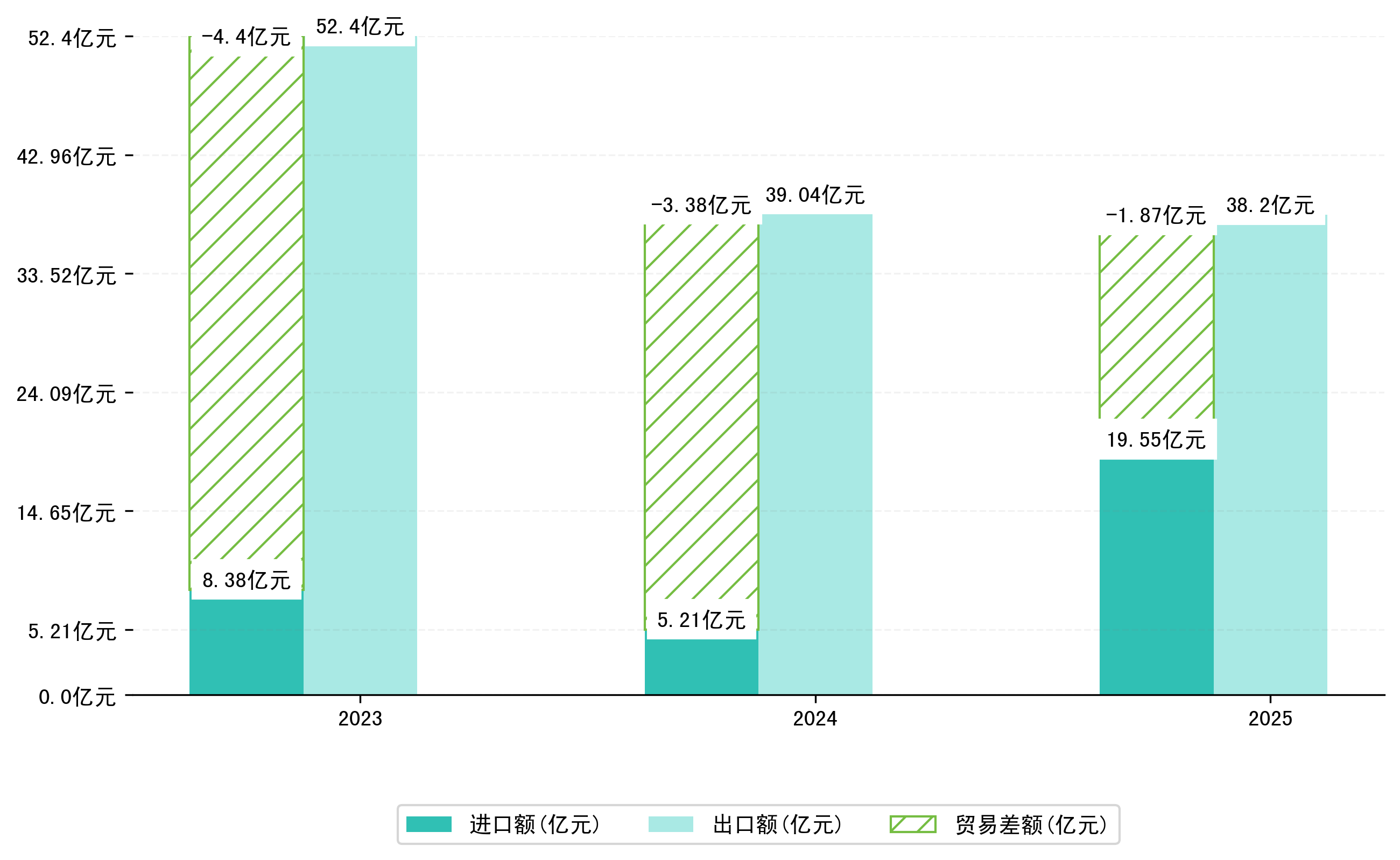 以人民币计,2025年9月益阳市贸易差额为1,3236,7841万元(贸易逆差),相比上月减少了2,8234,7954万元,即3947,1698万美元;相比上年同期减少了4,8679,4672万元,同比减少-137.35%。