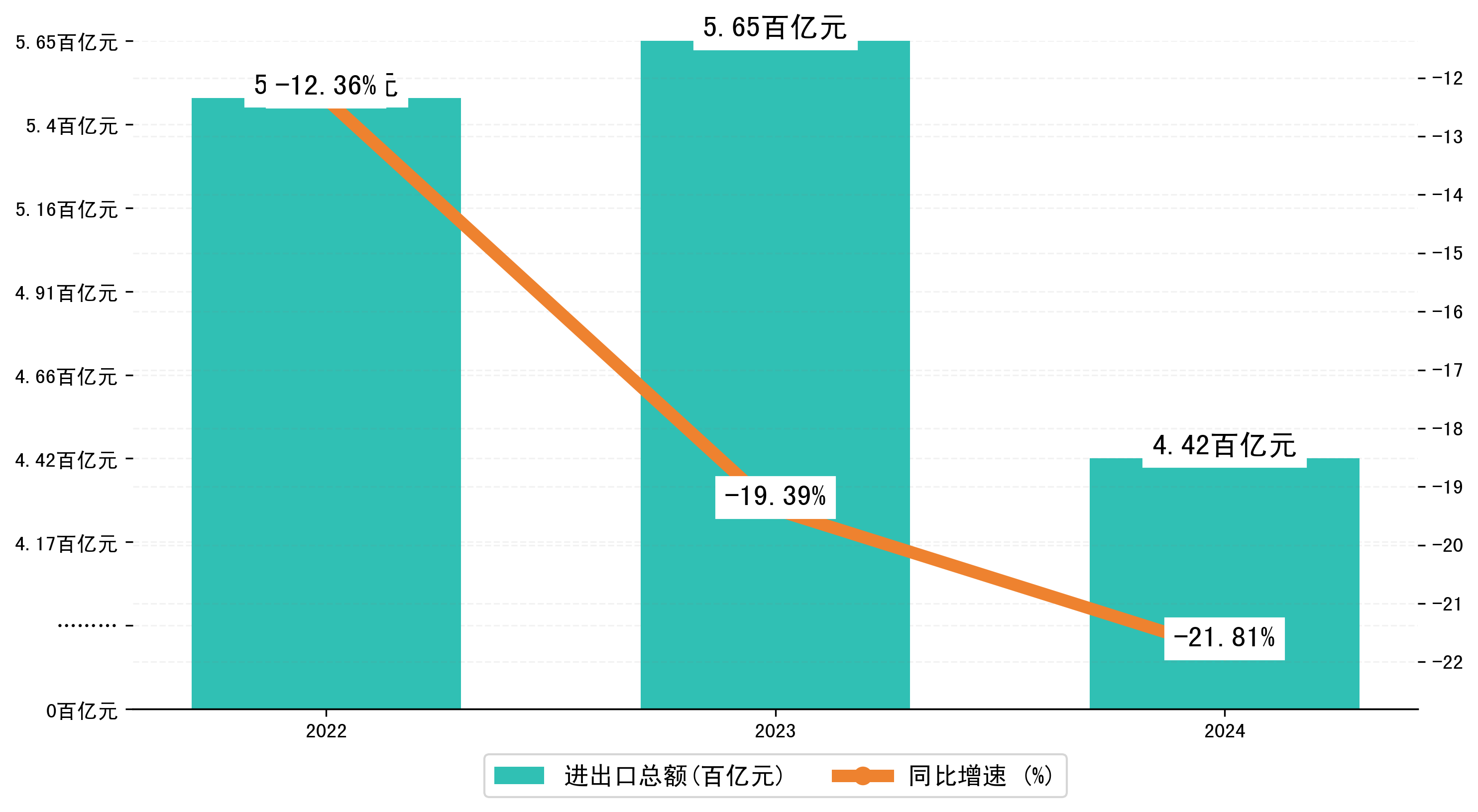 以人民币计,2024年1-10月岳阳市进出口总额为441,7961.4741万元,相比上年同期减少了123,2642.0431万元,同比减少了-21.20%。