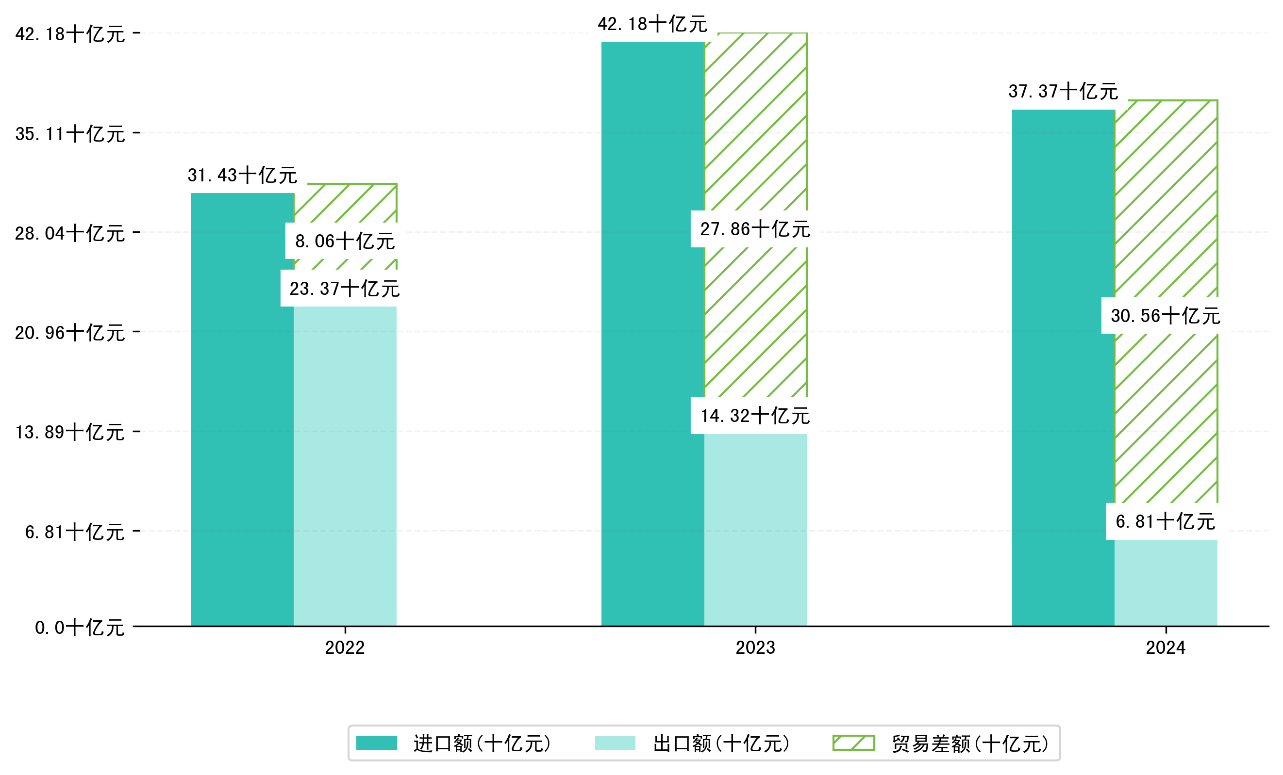 以美元计,2024年10月岳阳市贸易差额为5,9471,0629万美元(贸易逆差),相比上月减少了8374,3446万美元;相比上年同期减少了2,9854,2146万美元,同比减少100.8%。